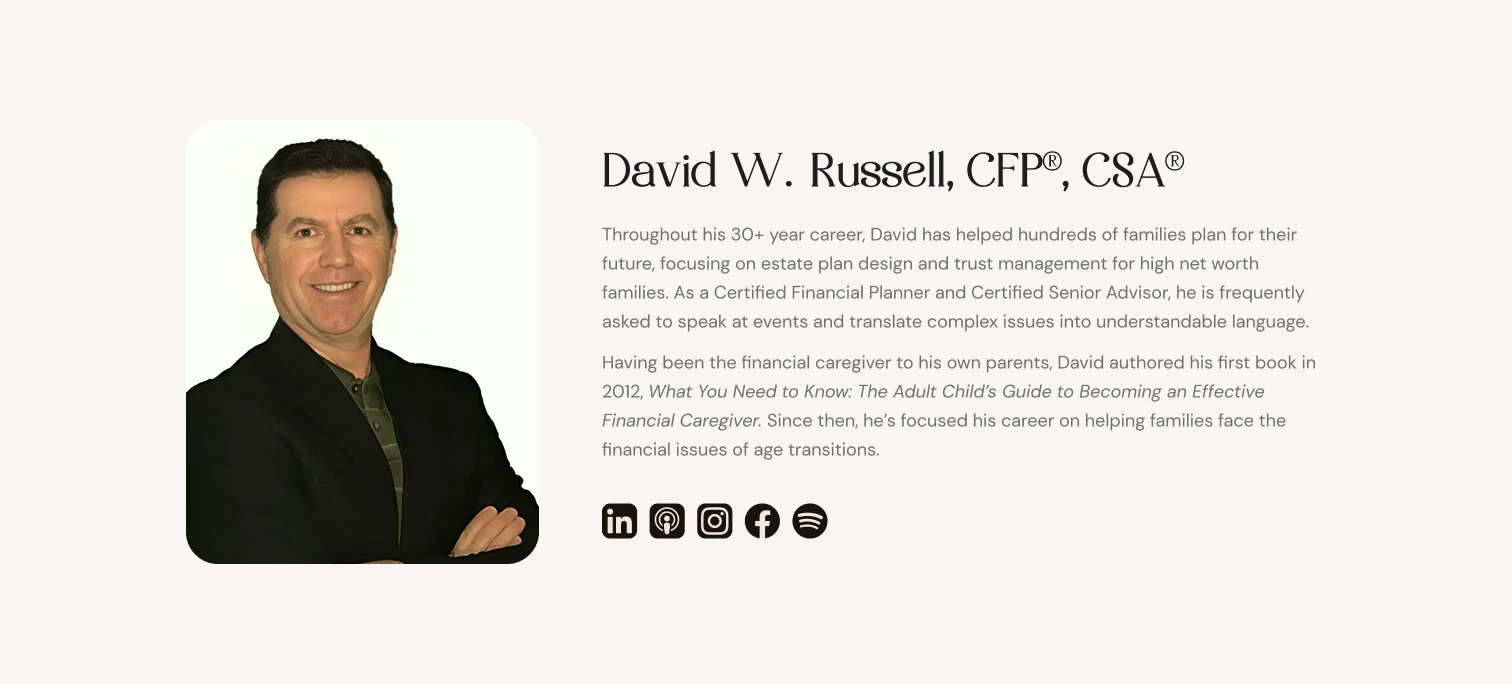 Introduction to David W. Russell, highlighting credentials (CFP®, CSA®) and experience helping families prepare for elder care.