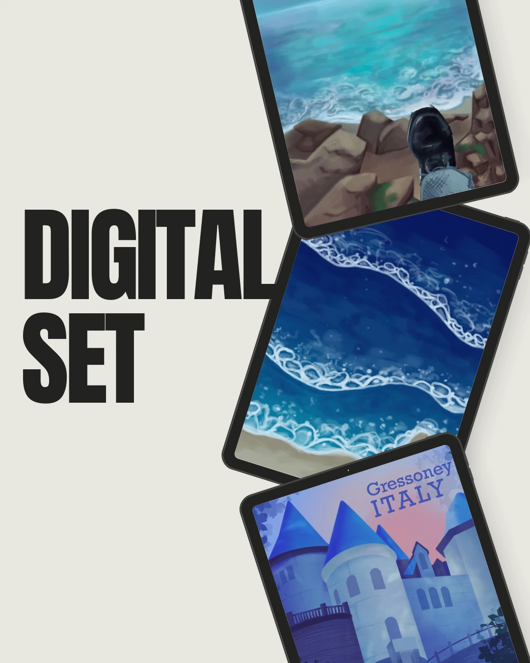 Three artworks with a soft, matching color palette creating a calm, balanced set. Each piece is unique but fits together visually for a cohesive look.