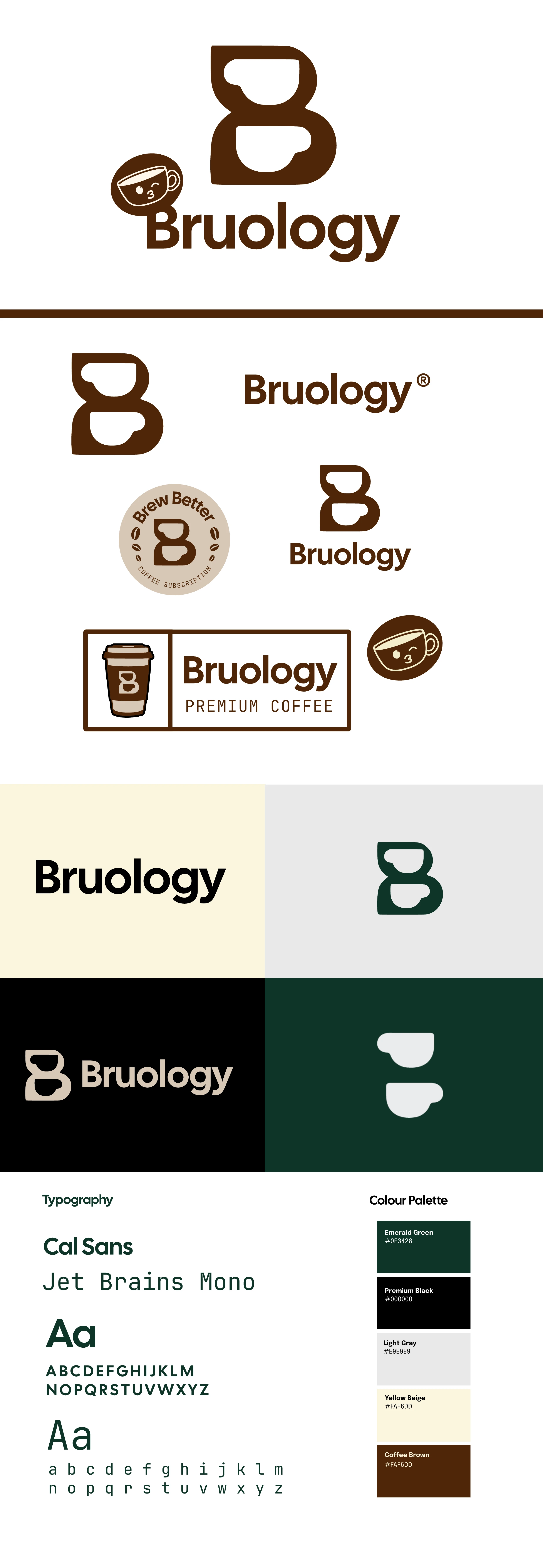 To create a modern brand identity and packaging system for Bruology, a coffee subscription that delivers fresh beans, ground coffee, and compostable pods in low-waste packaging. The goal was to design a brand that feels modern, sustainable, and premium, while standing out in a saturated coffee market.
