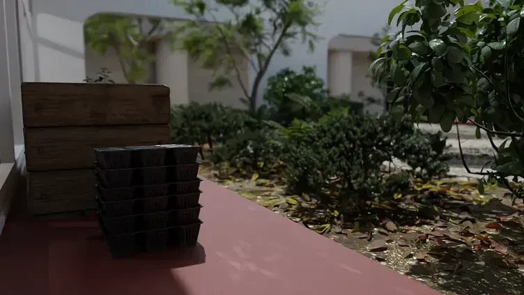 Modeled the architecture in blender, added landscape assets per the studios design. Water curtain was simulated using particle effects in the blender physics engine.
