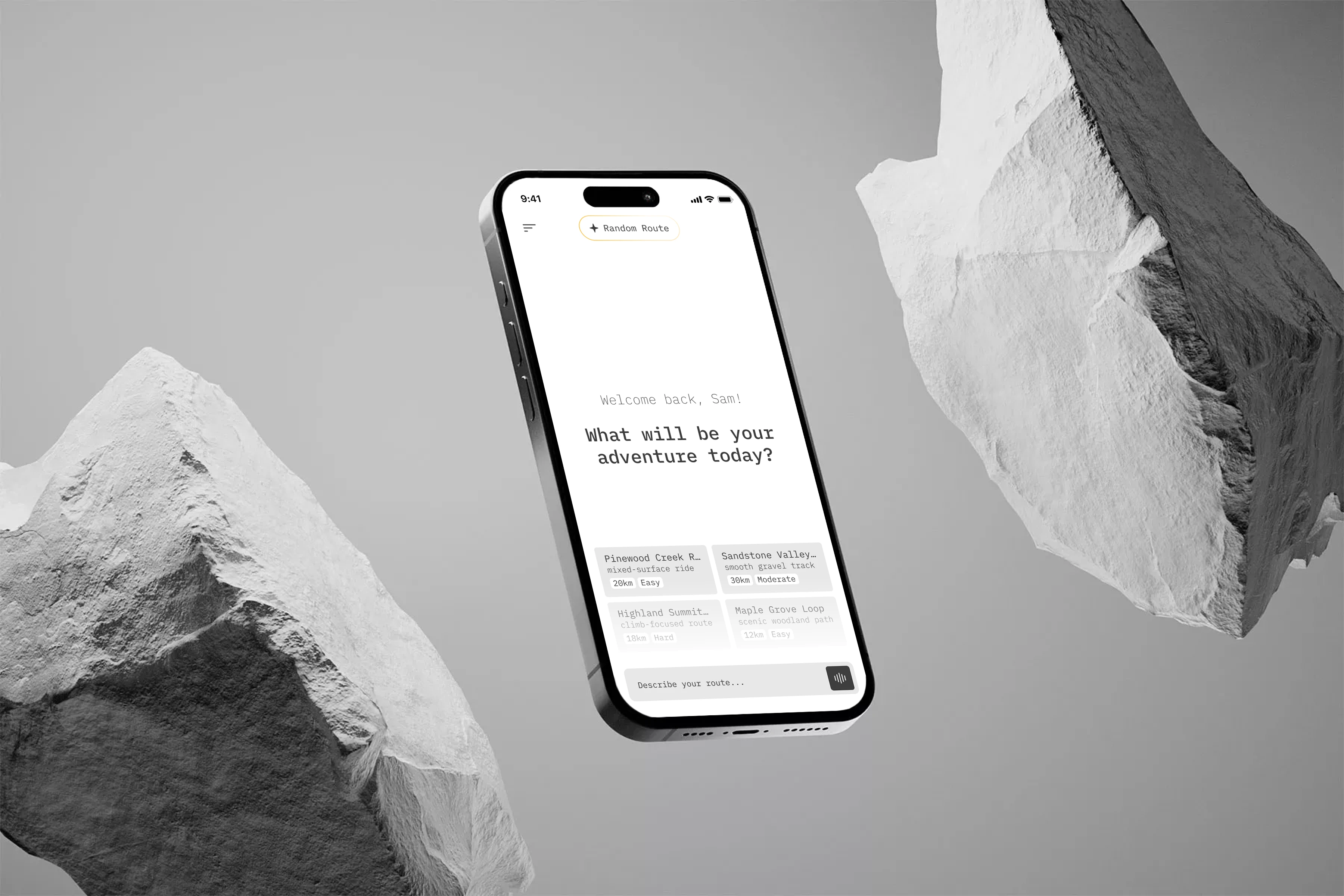 An AI cycling app generating personalized gravel routes from health data. Voice input, 3D maps, and smart difficulty matching for effortless ride discovery.