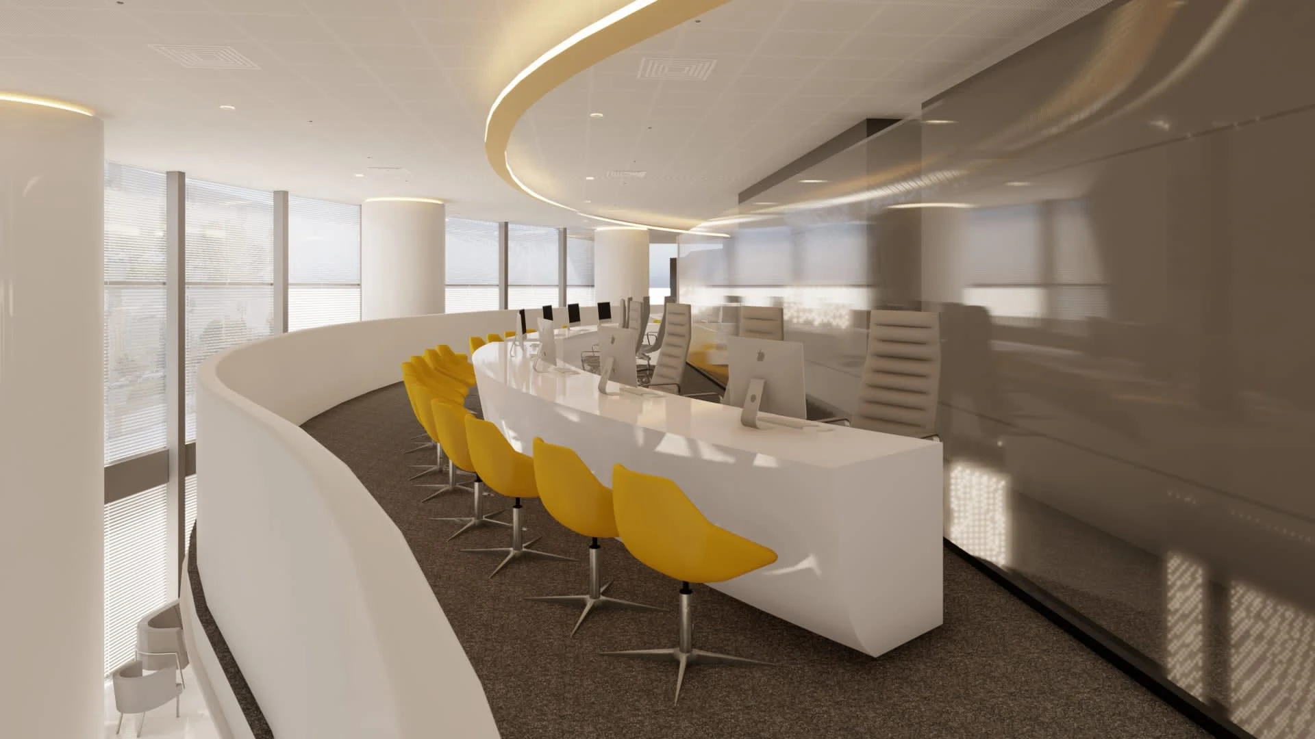 Produced realistic 3D renderings for a commercial interior showcasing its architectural design and highlighting coperate image to attract potential investors.