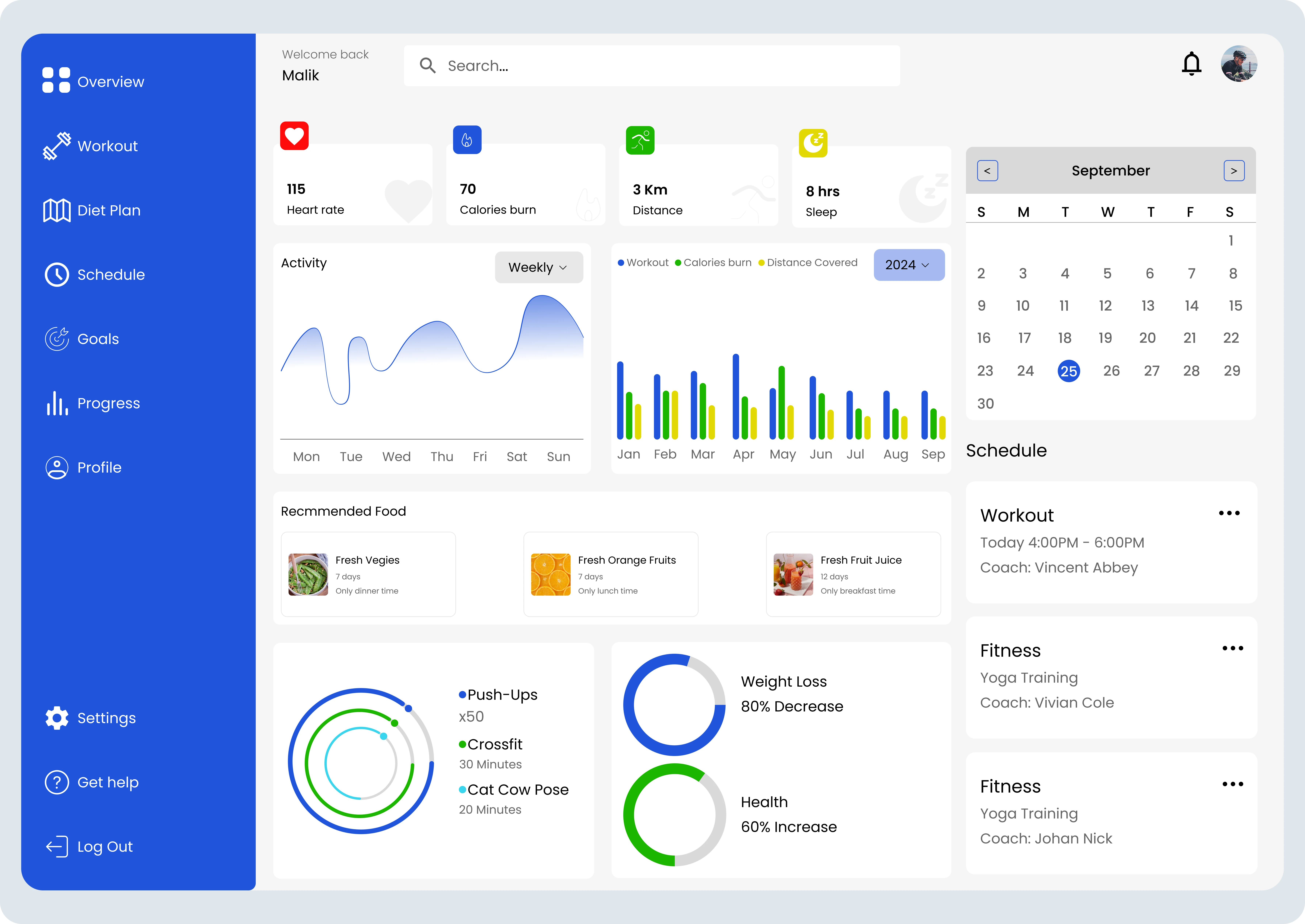 This product simplifies complex personal health data into a clean, actionable UI, featuring clear visualization of activity trends, sleep, and caloric output.