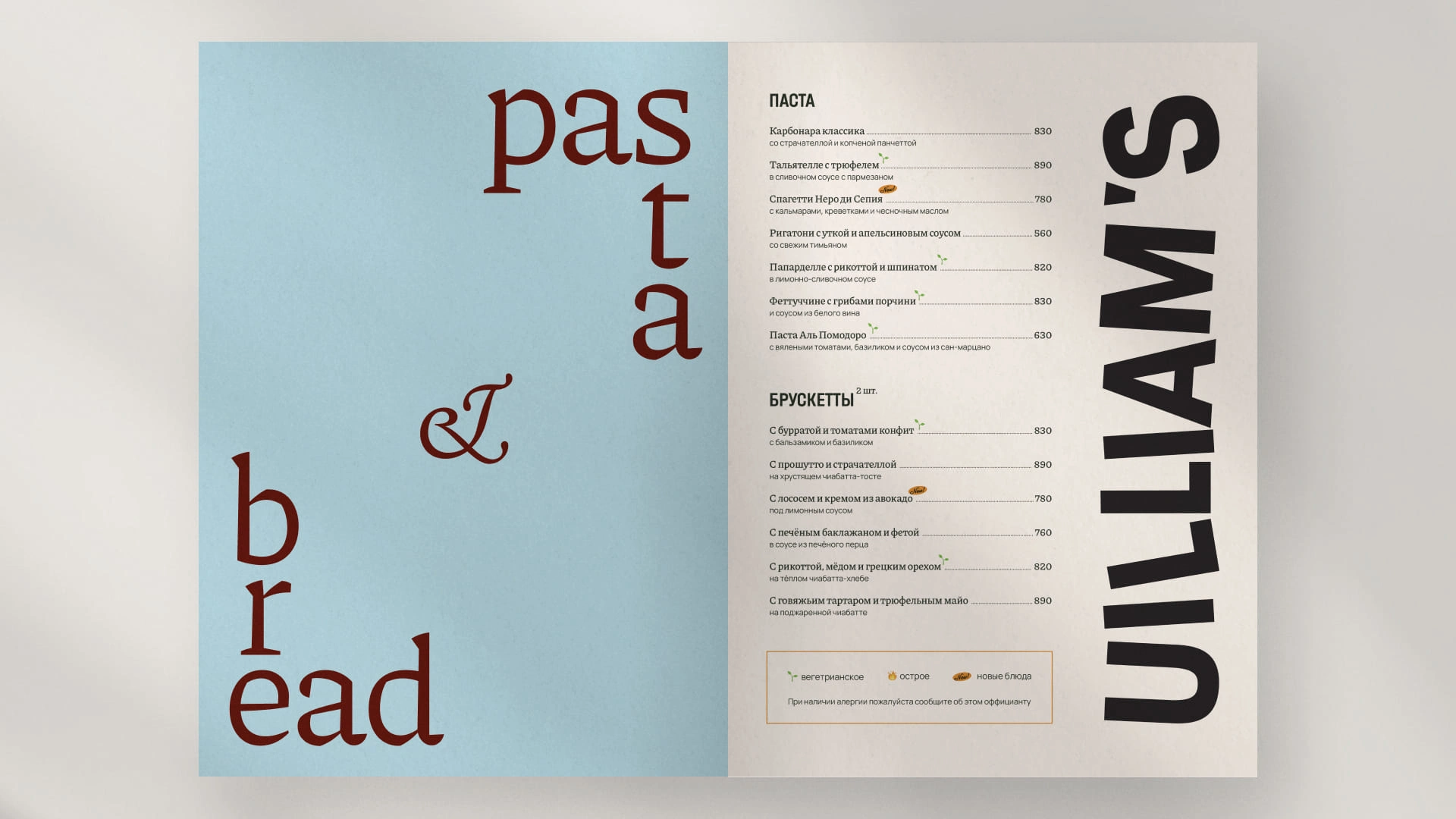 Uilliam’s is a contemporary Italian restaurant by chef Uilliam Lamberti, returning in a new format while staying true to its origins. The visual identity is built around warmth, tactility, and restraint — reflecting a cuisine that feels intimate, expressive, and timeless.