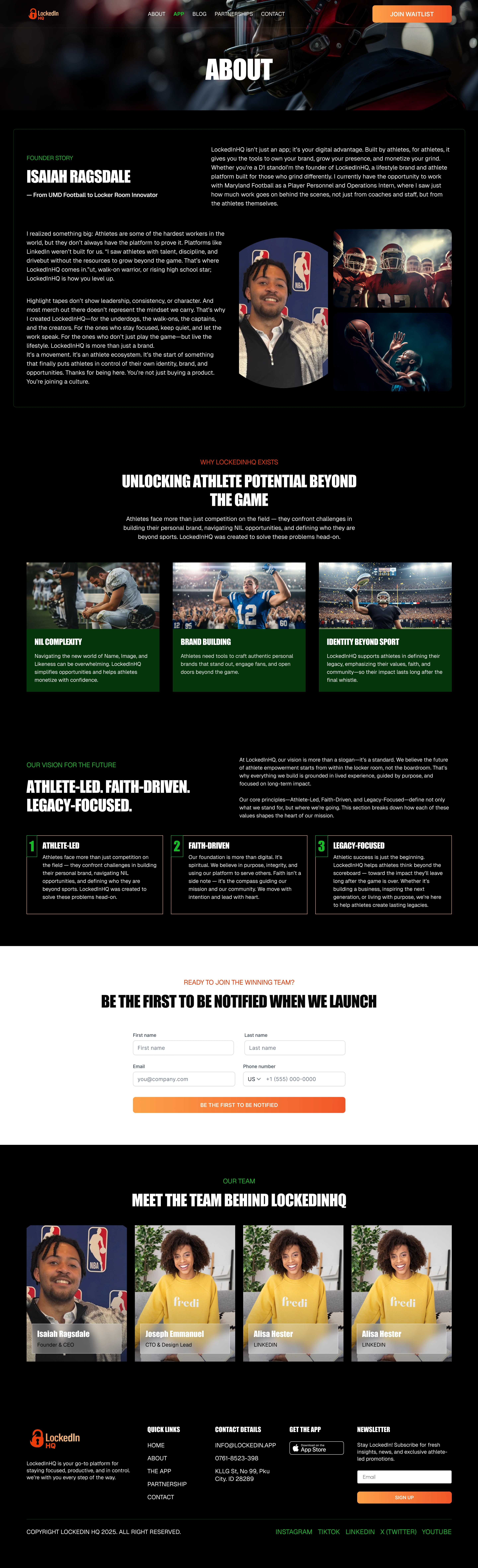 Objective: To design and develop LockedIn HQ's digital flagship, a dynamic marketing website that clearly communicates its value as a digital advantage and platform for athletes to own and monetize their personal brand and "grind."