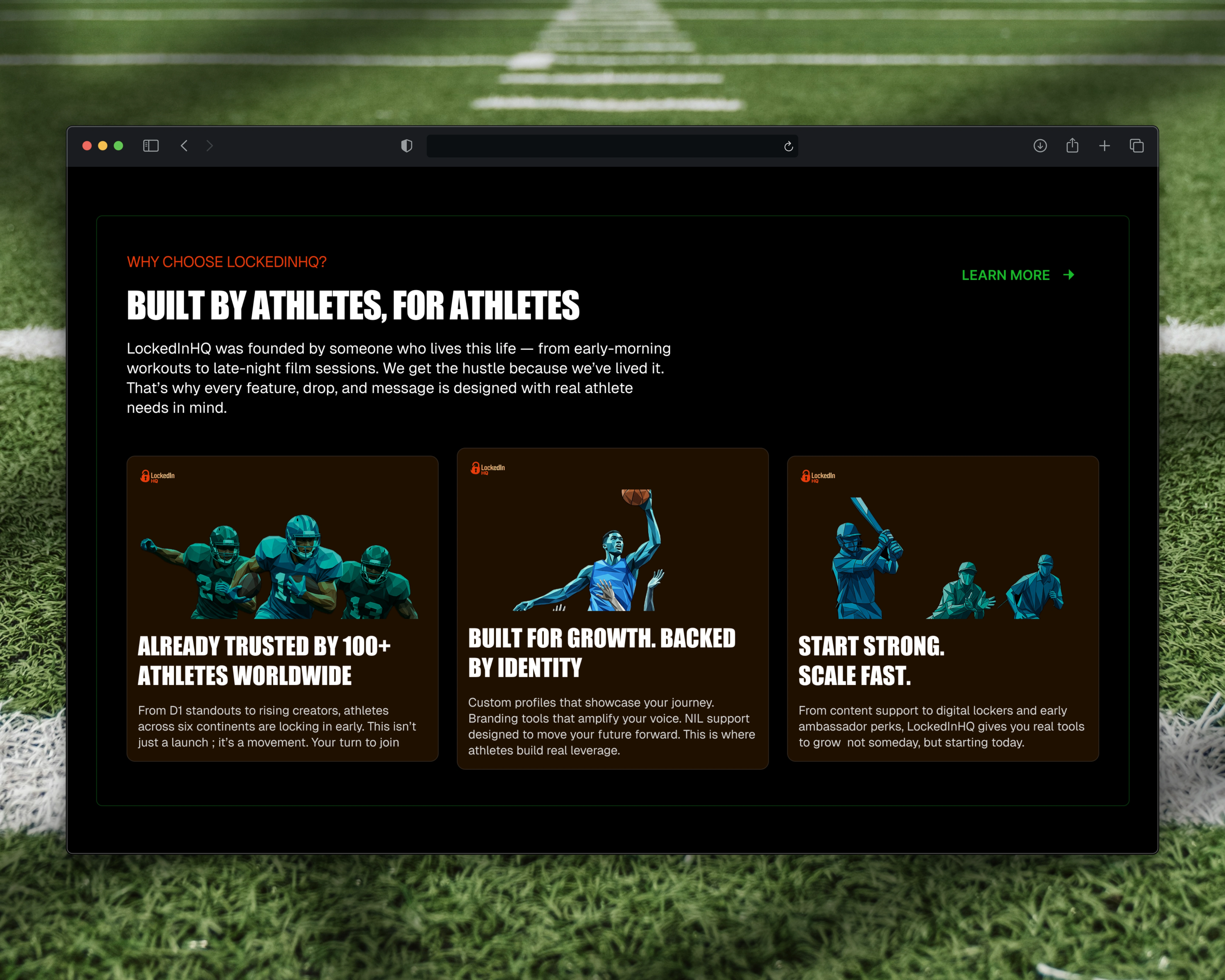 LockedIn HQ is more than just a deal-making app; itβs a lifestyle brand built by athletes for athlete independence. The website had to capture this defiant, empowering spirit while also clearly communicating its unique, no-middlemen value proposition. The key challenges were: