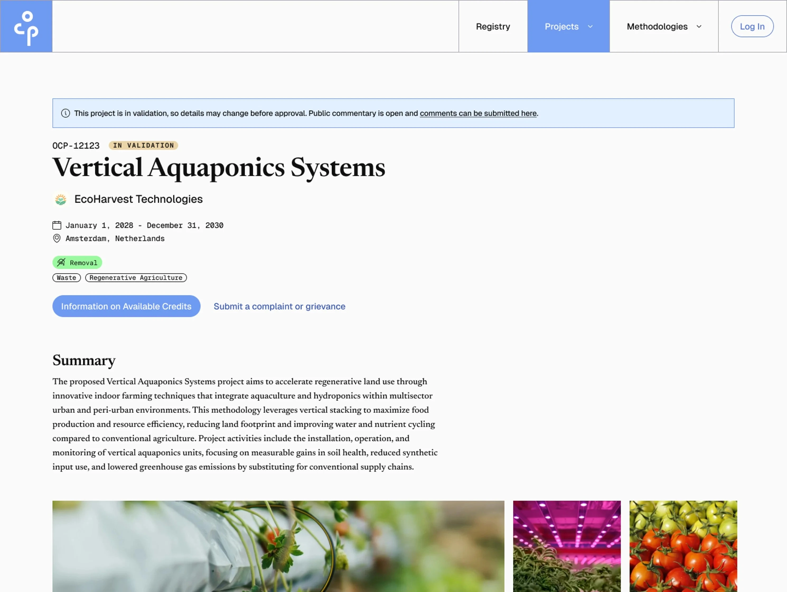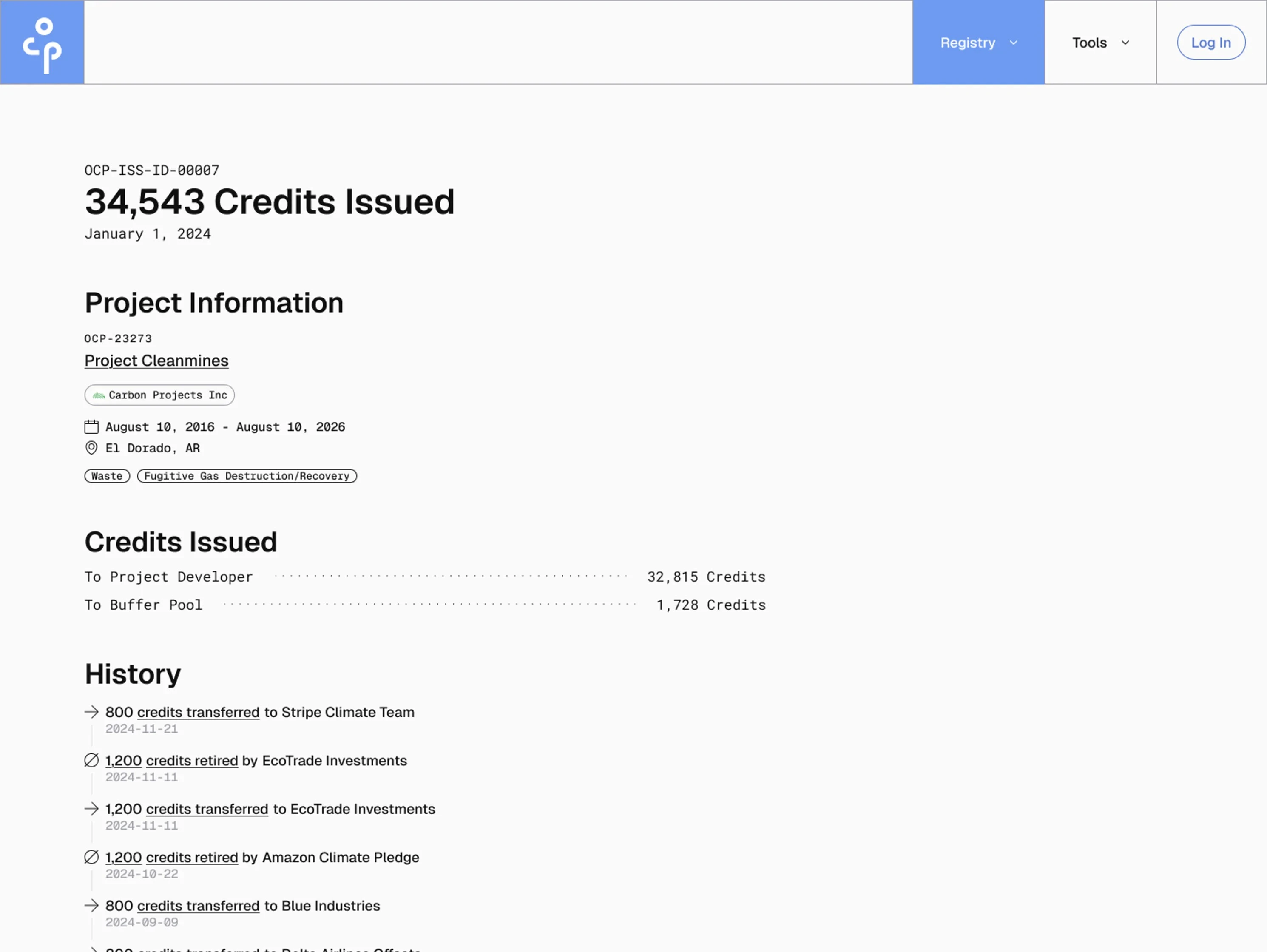 The Open Carbon Protocol is a new carbon credit registry aiming to bring speed and trust to the voluntary carbon market. I led design on our product from idea to launch and beyond. Now in its third version, the OCP continues to deliver high-quality credits, with our customers issuing almost 300,000 credits to date.