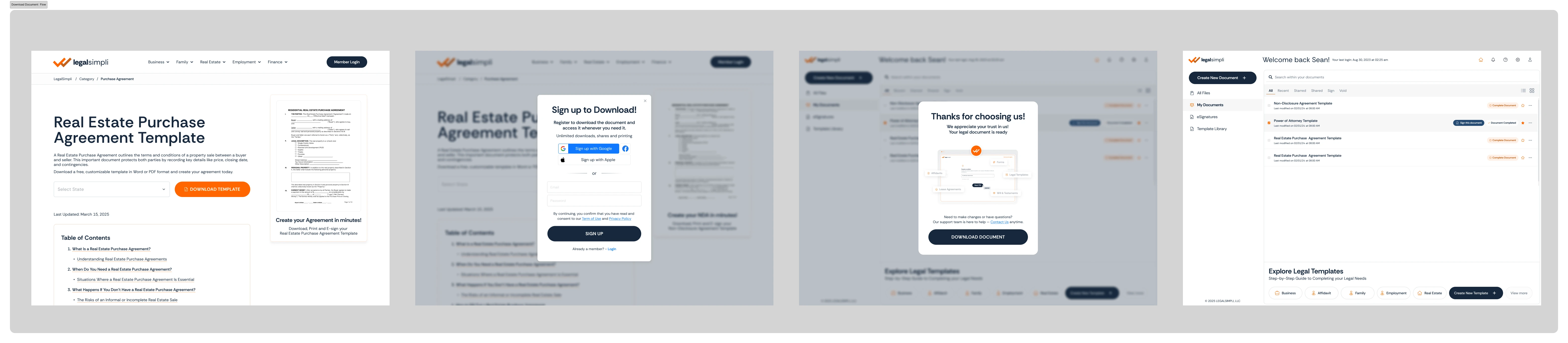 Acquisition Logic: Designed seamless transitions from guest template discovery to secure account creation and document fulfillment.