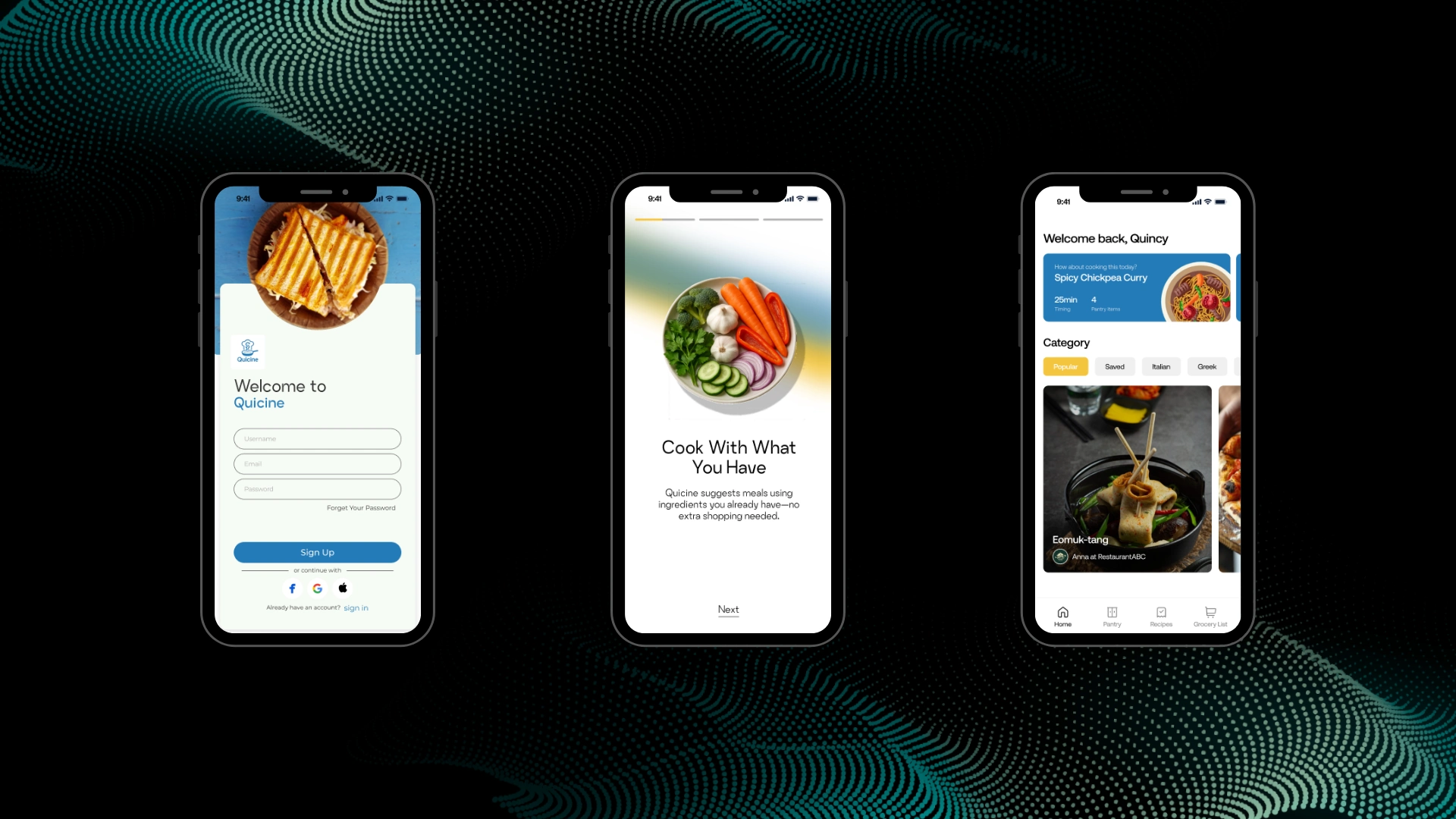 Built with FlutterFlow and Firebase, the app allows users to keep a real-time inventory of their pantry, automatically update products by scanning grocery receipts, and manage individual user profiles with dietary preferences and nutritional goals. Based on available ingredients and user behavior, Quicine delivers personalized recipe recommendations powered by AI, adapting over time to each user’s habits.