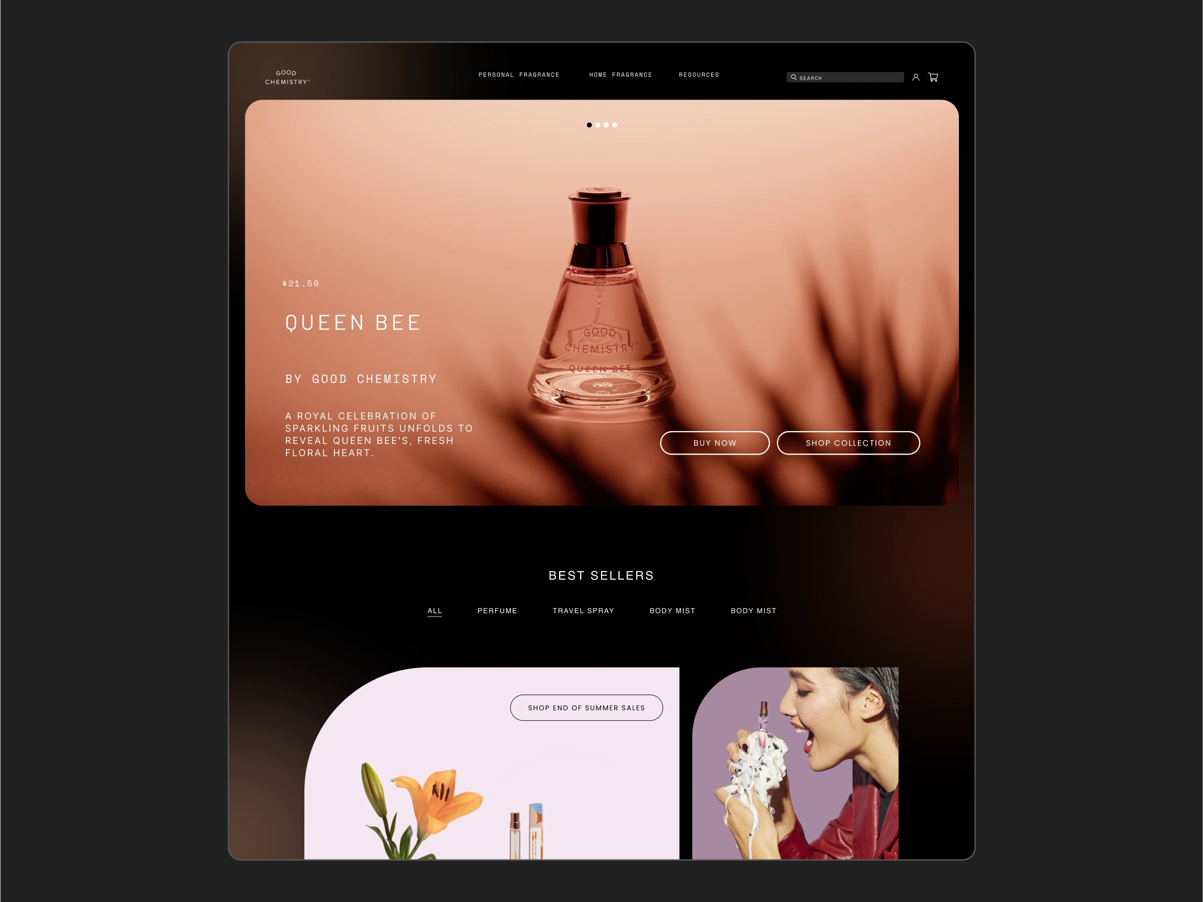 Spec web design for the eCommerce company, Good Chemistry.