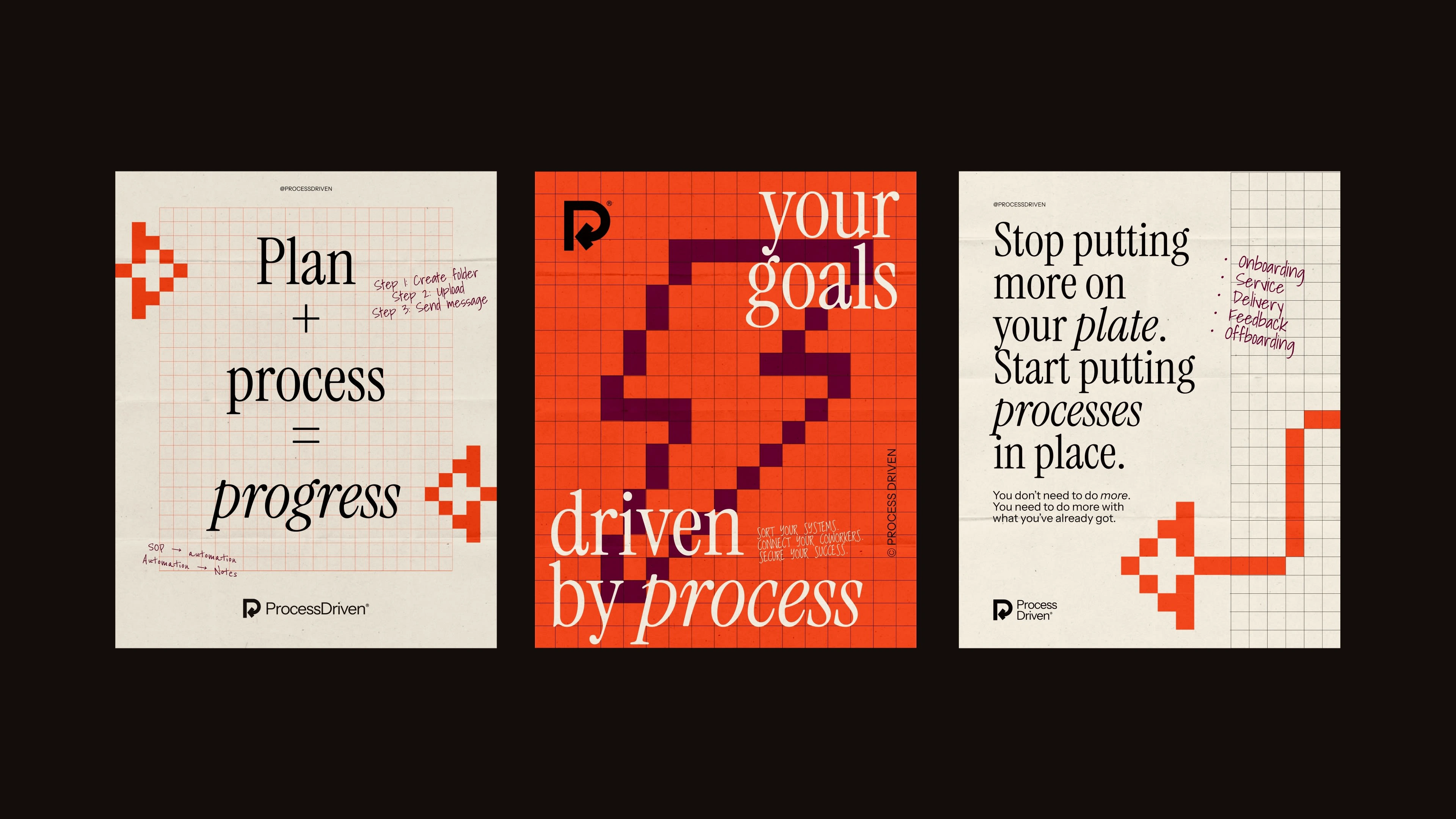 A structured yet flexible rebrand for ProcessDriven, turning DIY design into a polished, scalable identity inspired by systems and simplicity.