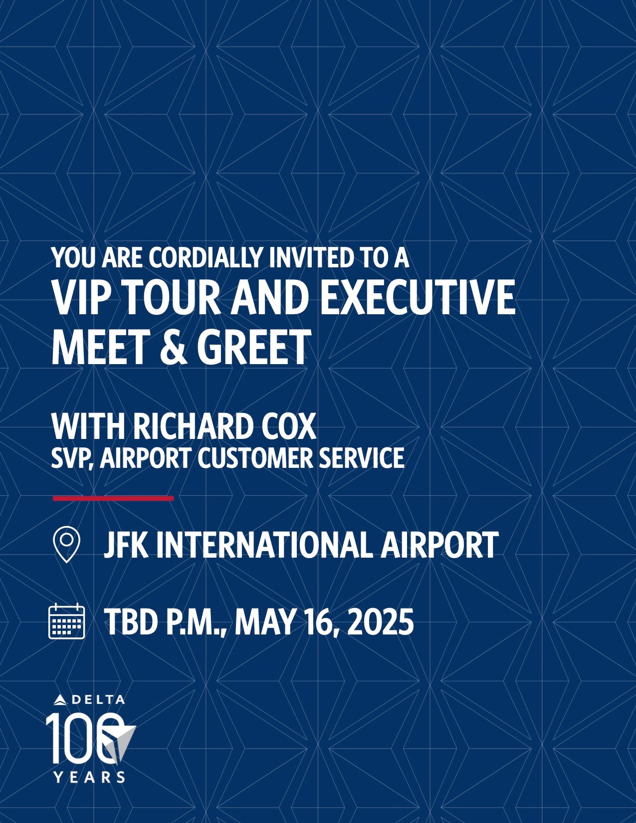 Collaboration with Delta Government Affairs, developing templated visuals and copy within tight branding constraints for events celebrating Delta's Centennial.