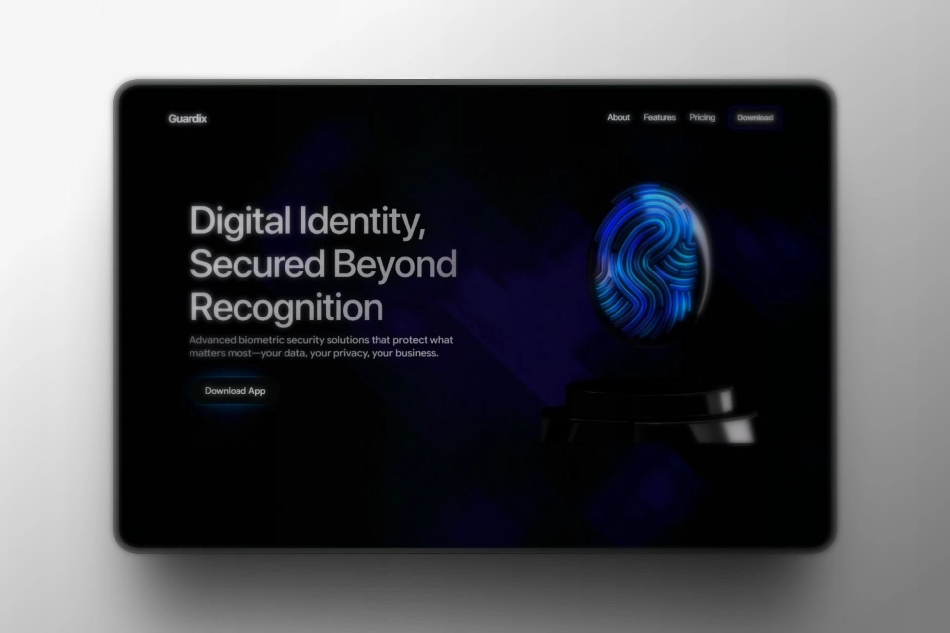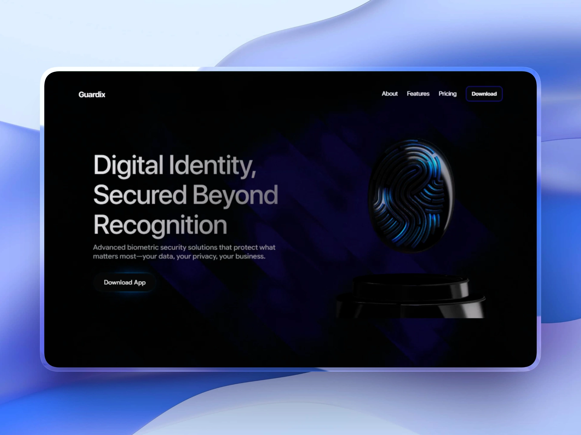 Designed and developed a high-converting landing page for Guardix, a biometric cybersecurity platform. Built in Framer with custom 3D hero animations using Spline and Unicorn Studio. The design emphasizes trust and technical credibility through interactive fingerprint visuals, clean information architecture, and conversion-optimized user flows. Fully responsive with smooth scroll interactions and performance-optimized 3D elements.