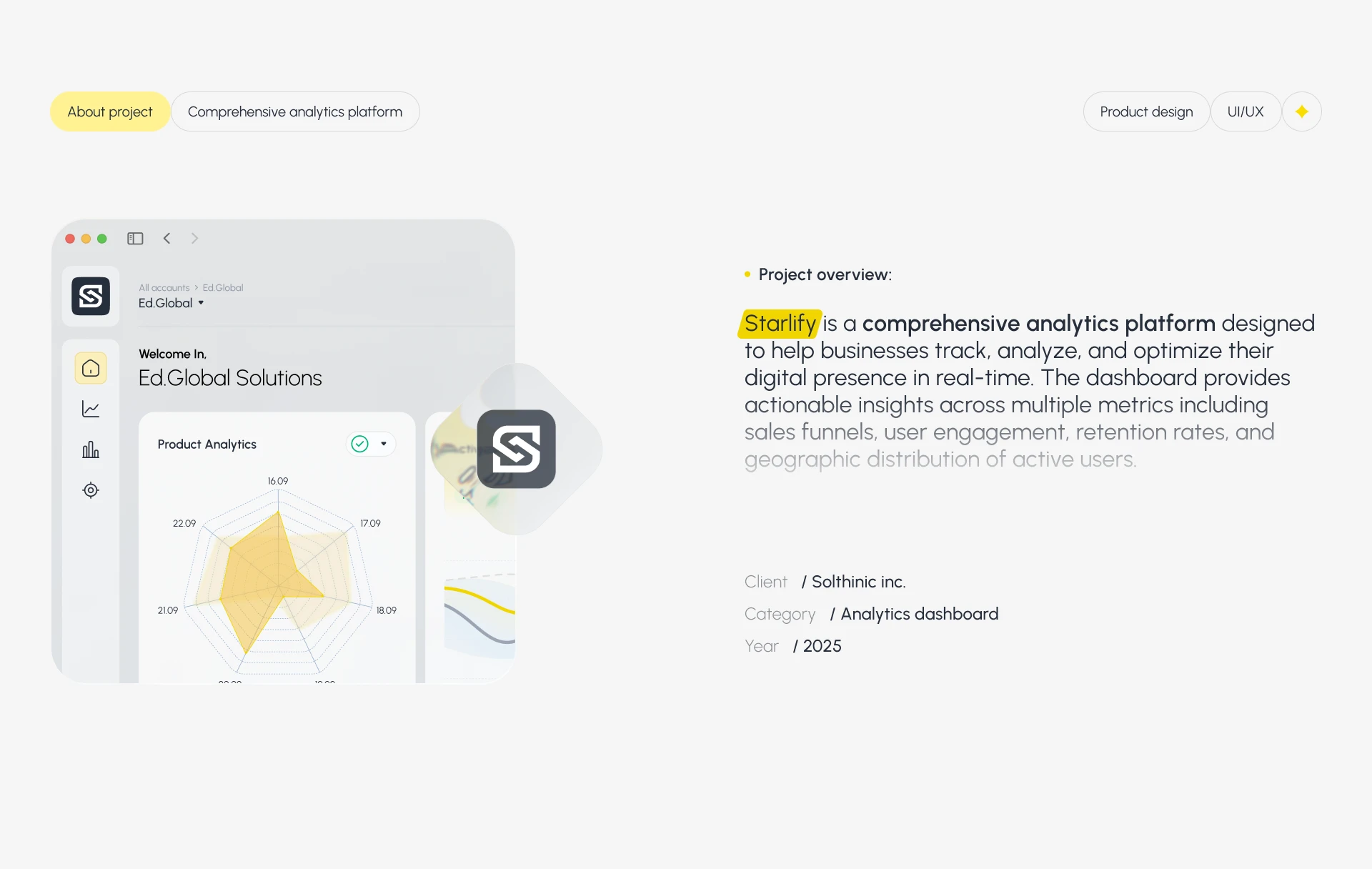 Starlify is a comprehensive analytics platform designed to help businesses track, analyze, and optimize their digital presence in real-time. The dashboard prov…