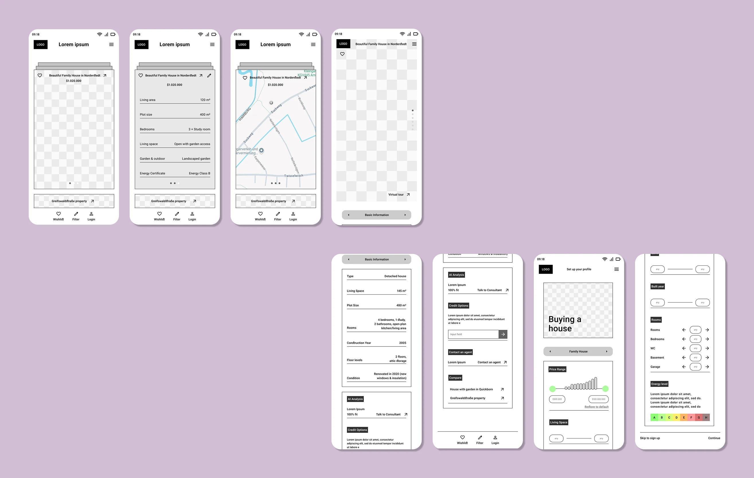 The final UI came together around one idea: that finding a home should feel manageable, not overwhelming. Every screen is laid out so the most important action is always within reach, whether that's saving a property you love, reaching out to an agent, or locking in a viewing date. Nothing is hidden behind extra steps or buried in menus.
