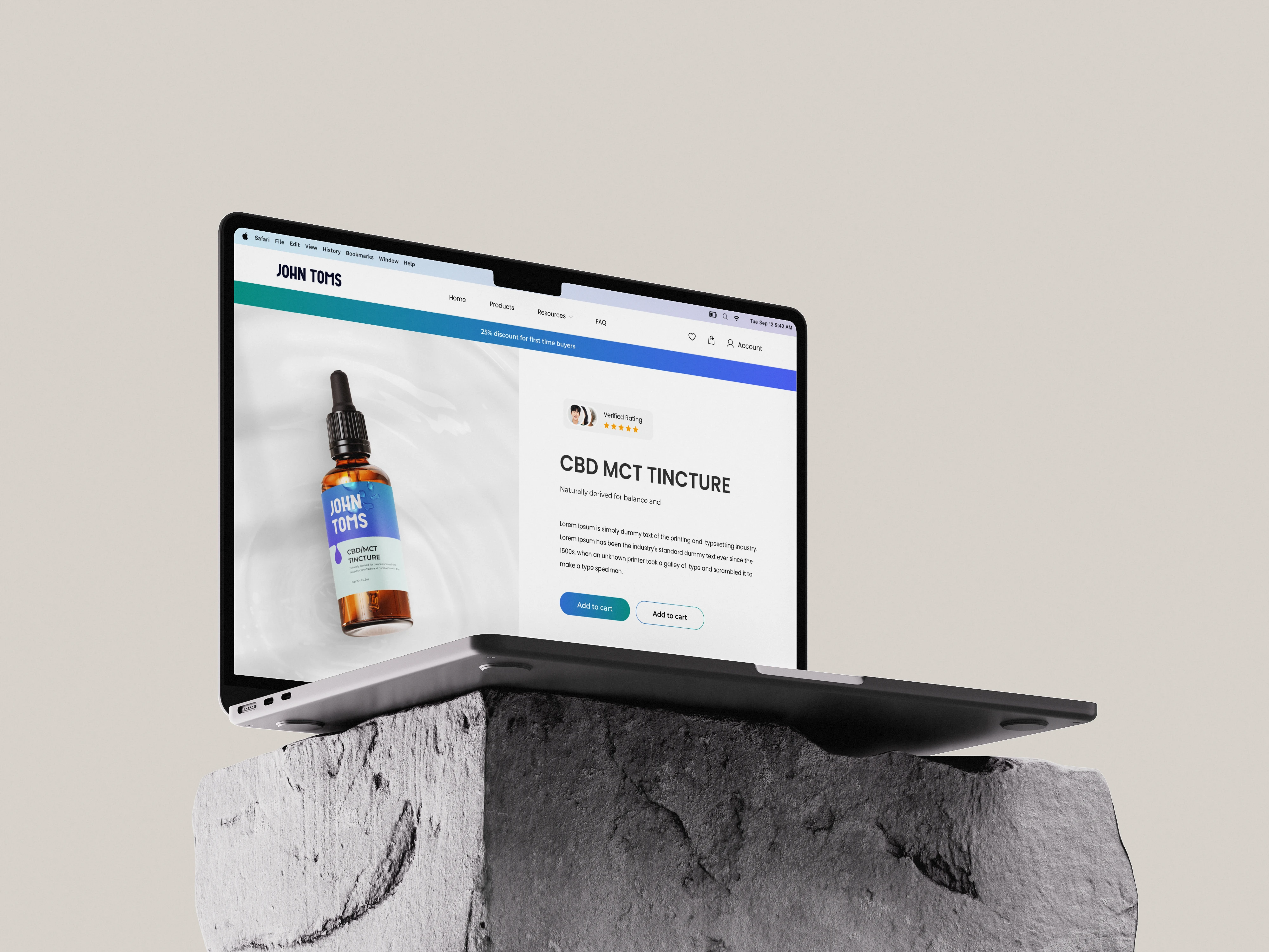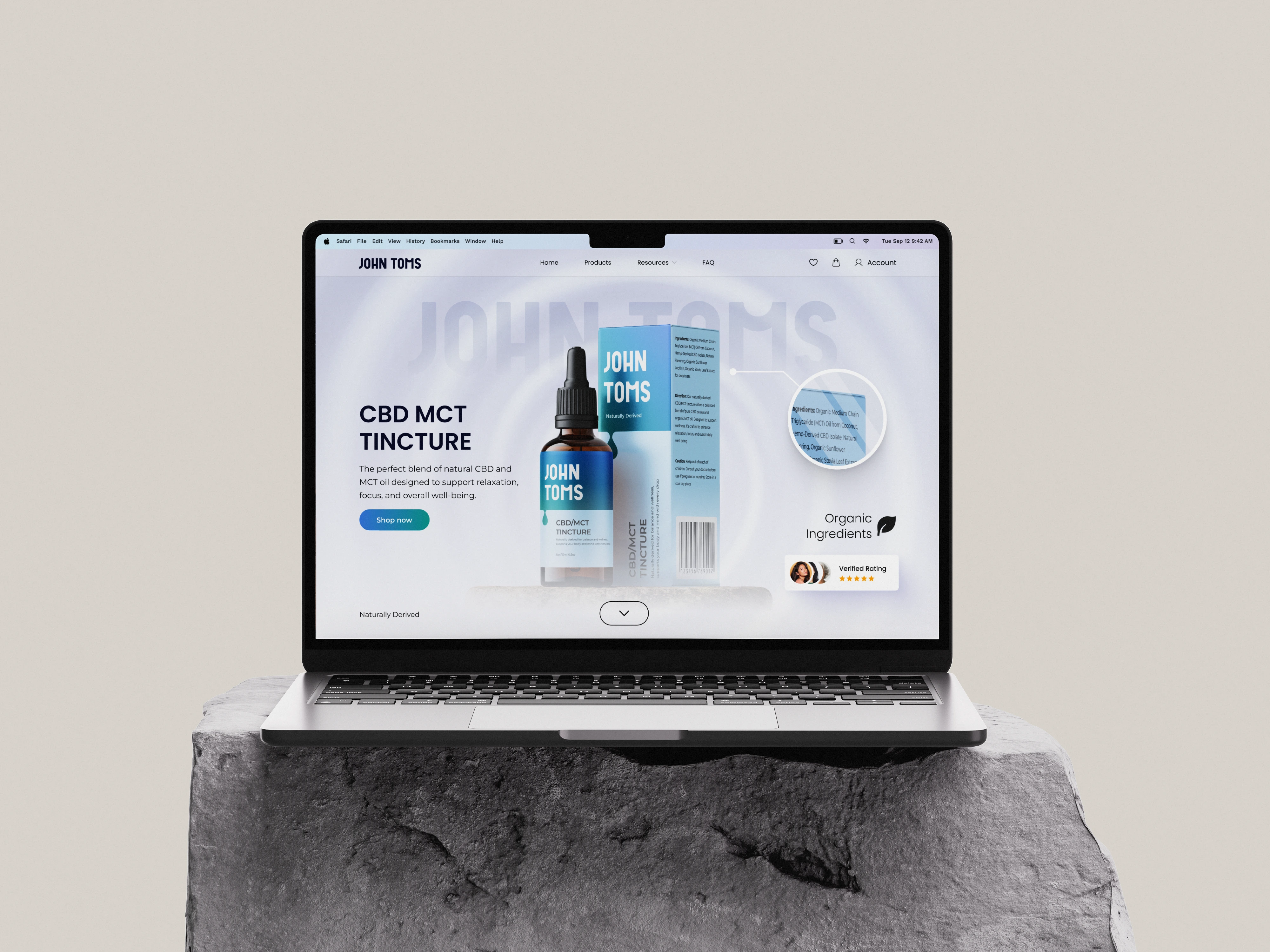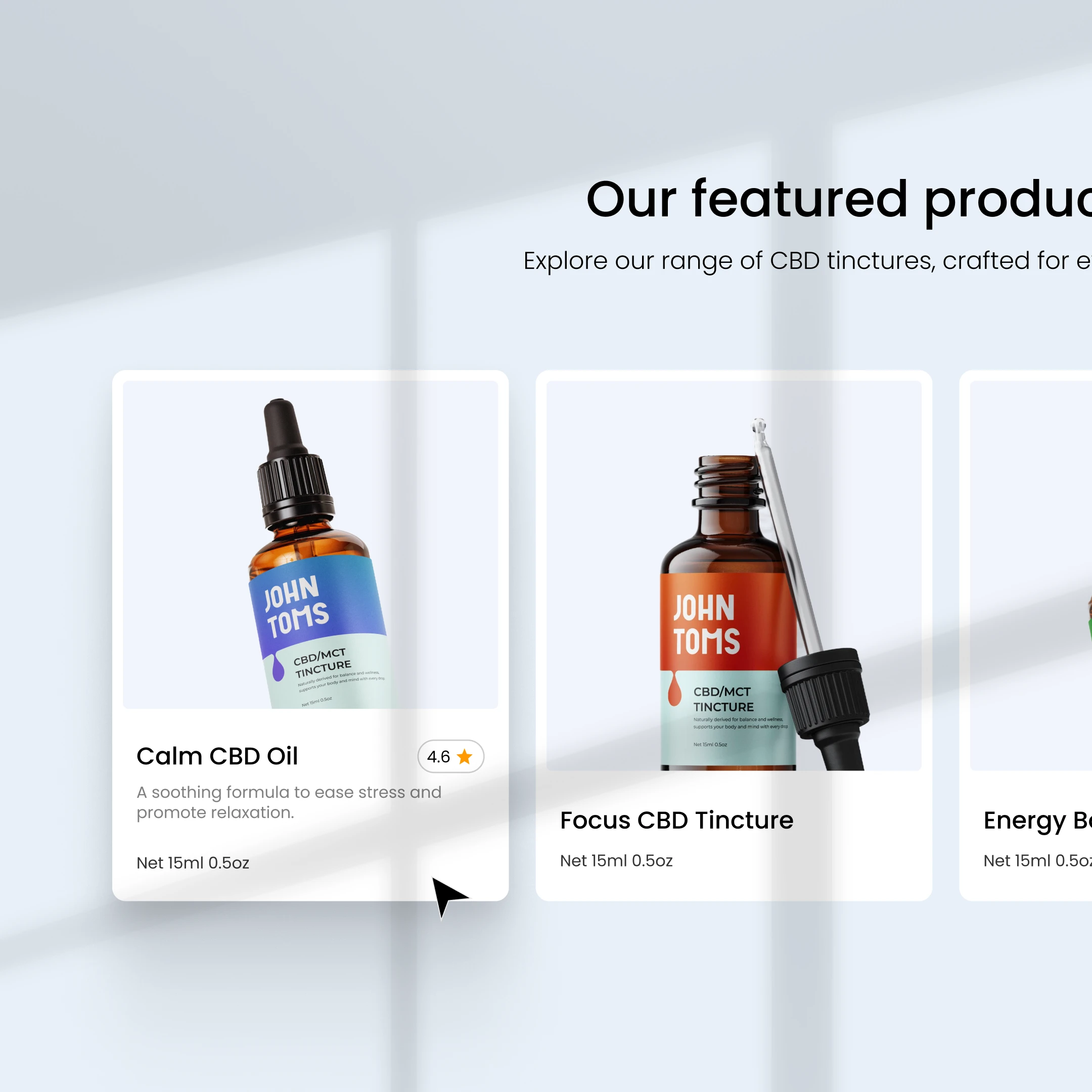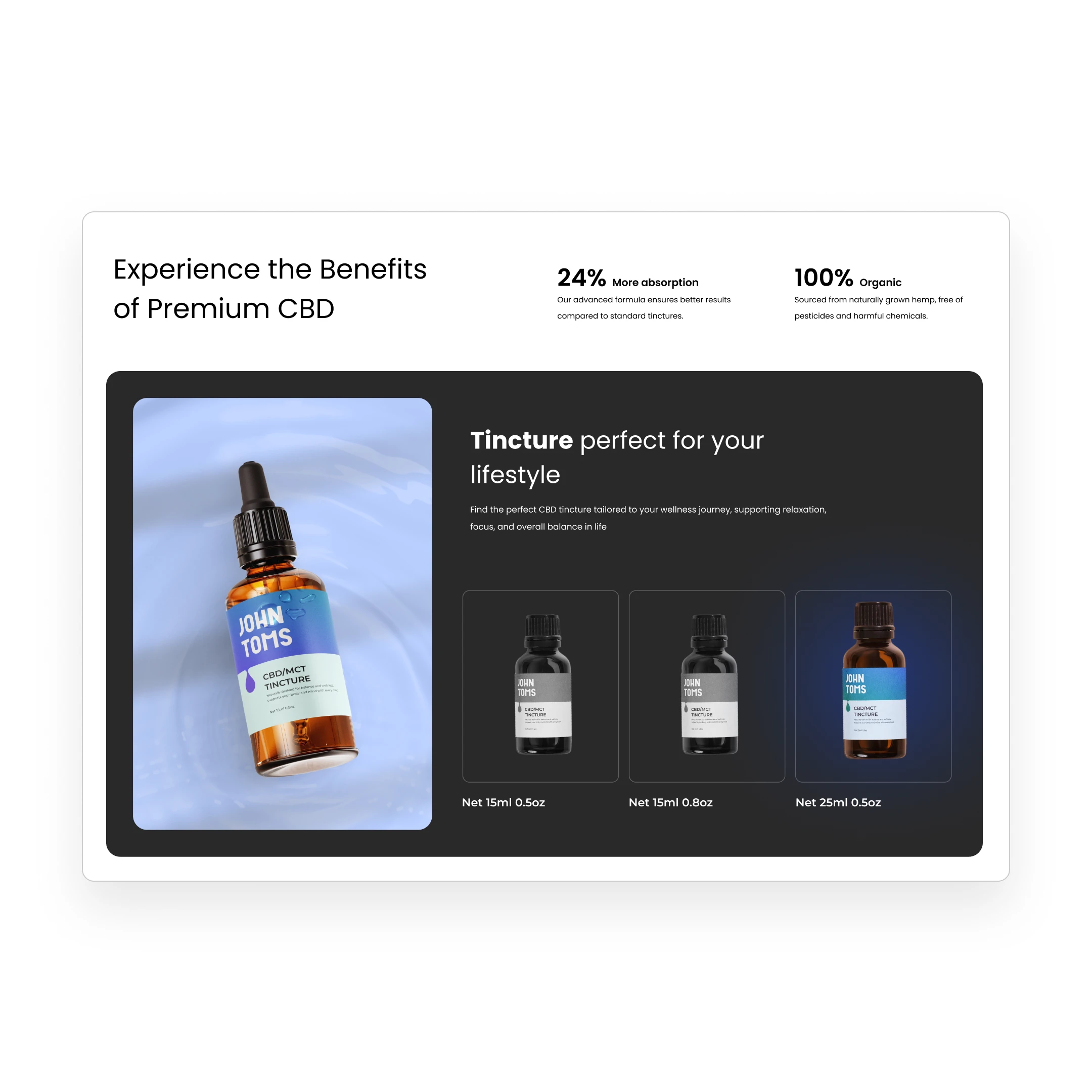Objective: Design a calming, high-converting landing page for John Toms — a premium CBD tincture oil brand that promotes balance, relaxation, and natural wellness.