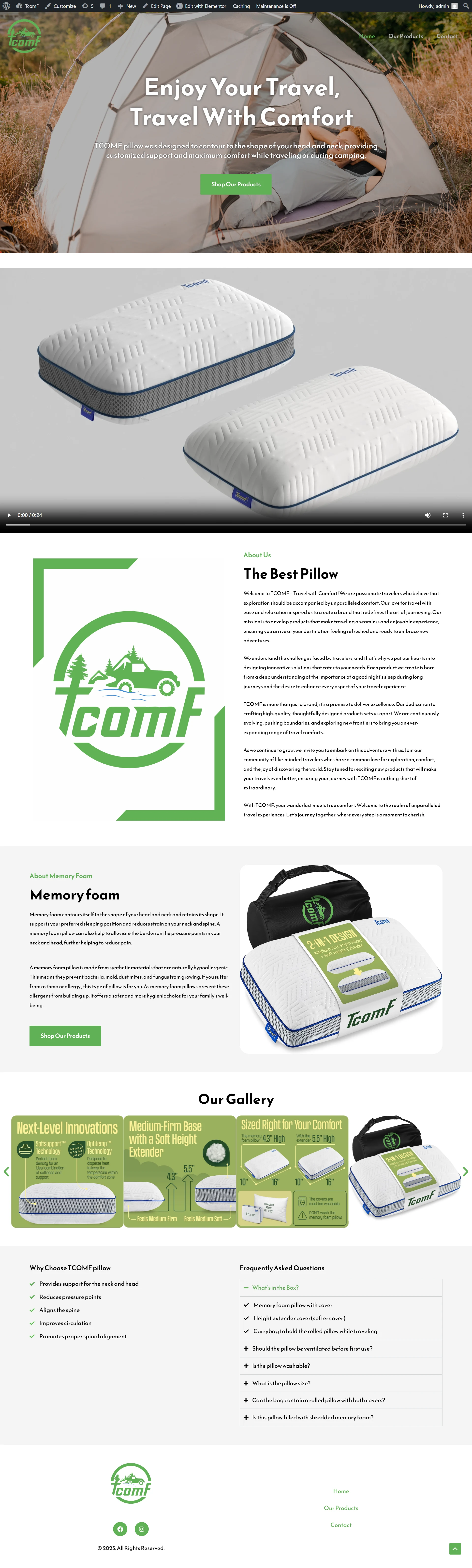 i was hired by TCOMF to design their website that promotes their camping pillow.