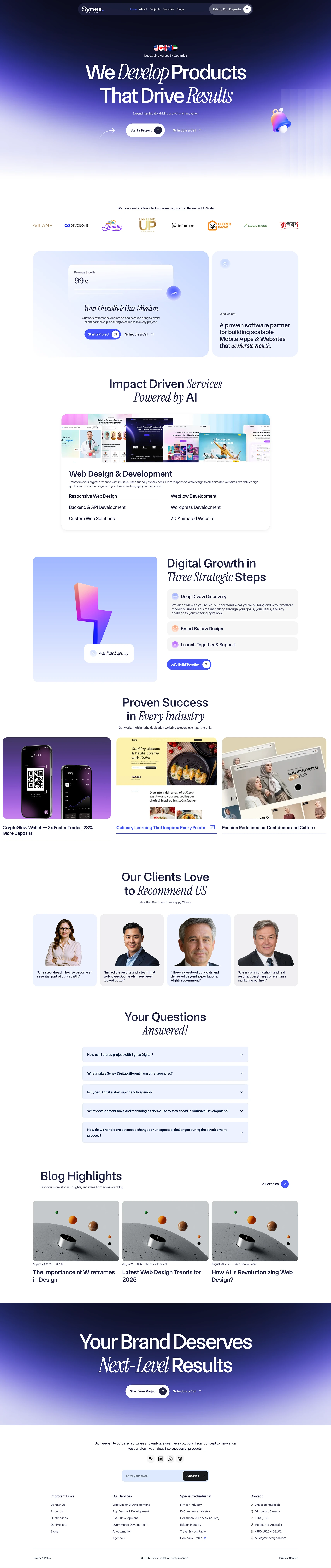 Built a sleek, professional website that reflects Synex Digital’s tech-forward identity and global reach. The site needed to position them as a full-service agency handling web, mobile, SaaS, AI & automation — while keeping the interface approachable, clean, and brand-consistent.