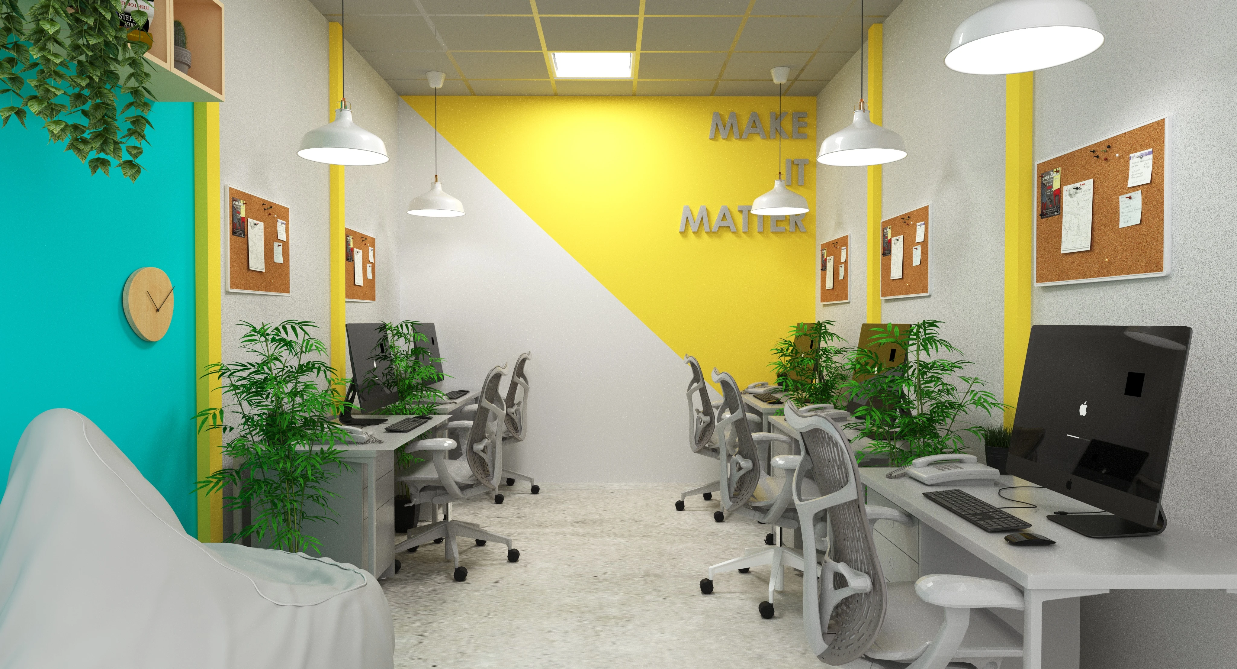 Creative corporate offices that needed a welcoming space but focused on collaborative work.