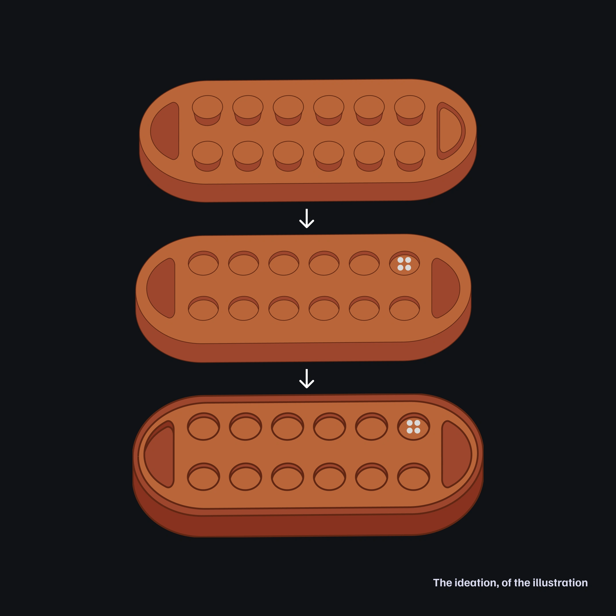 Started with reference photos of real Mancala boards. That warm wood texture, the carved pits, the way your hand naturally reaches for the stones - all of that needed to translate digitally.