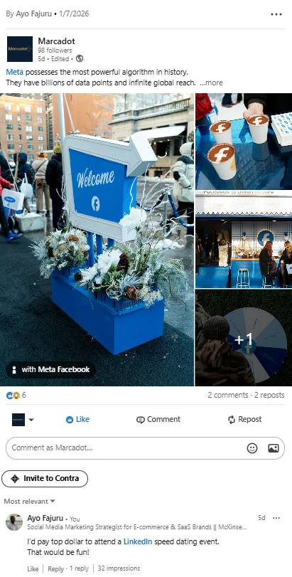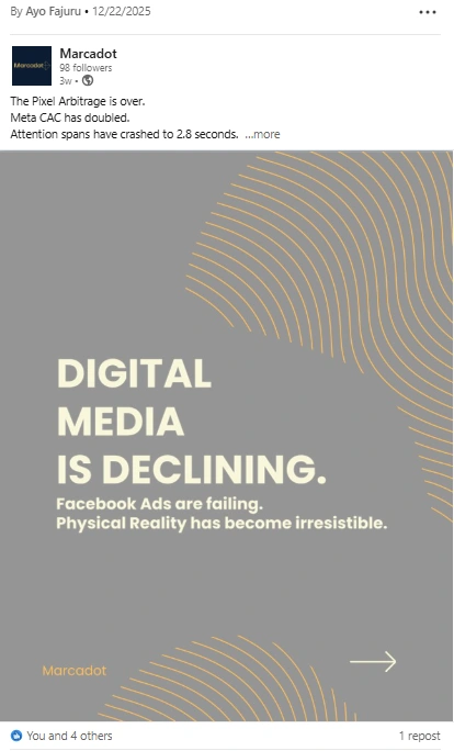 I grew Marcadot's LinkedIn presence into a high-intent B2B asset in 28 days. 1,260% growth trajectory. No ads.