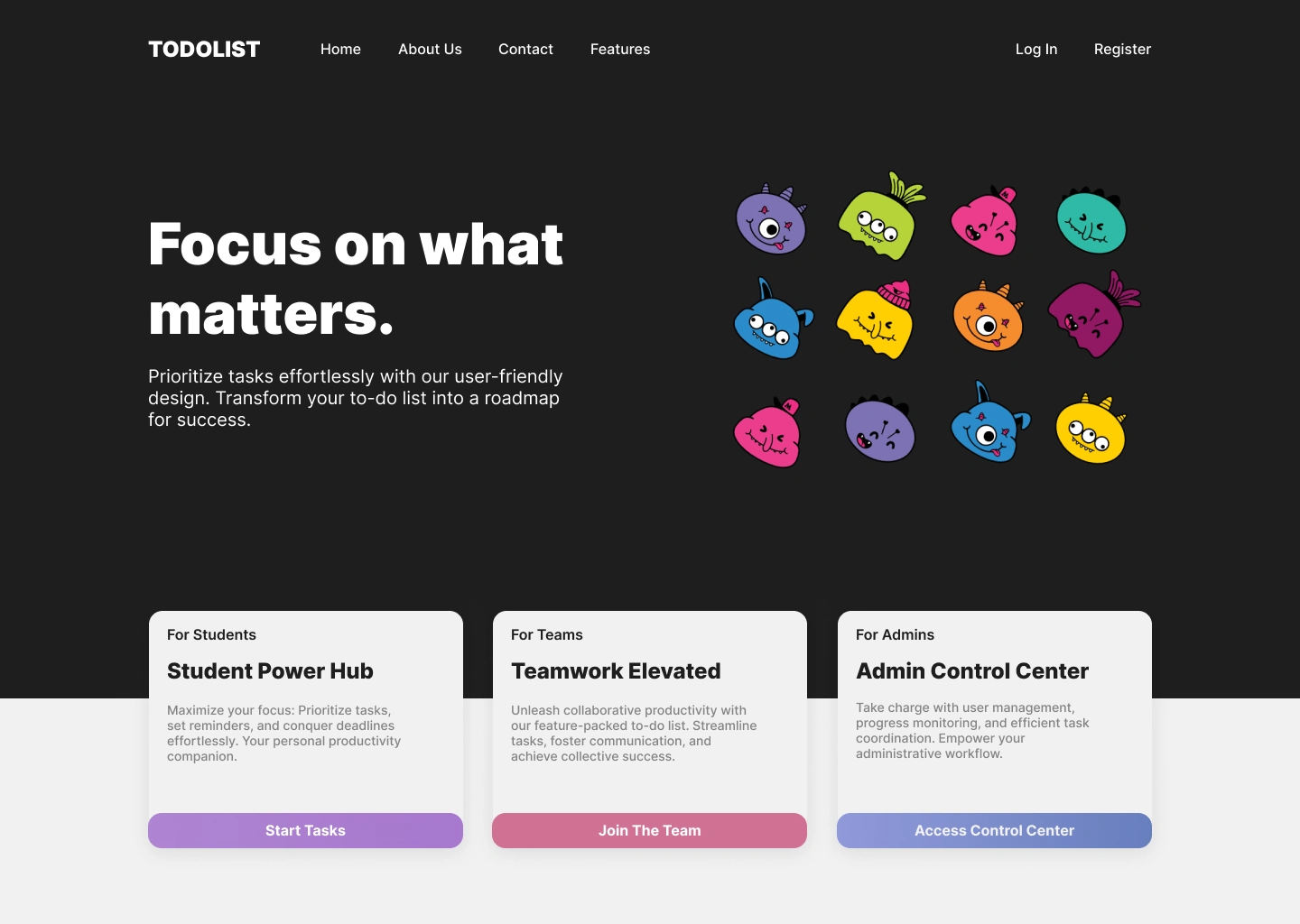 Landing Page UI Design for a To-Do List app. Simple, but colorful.