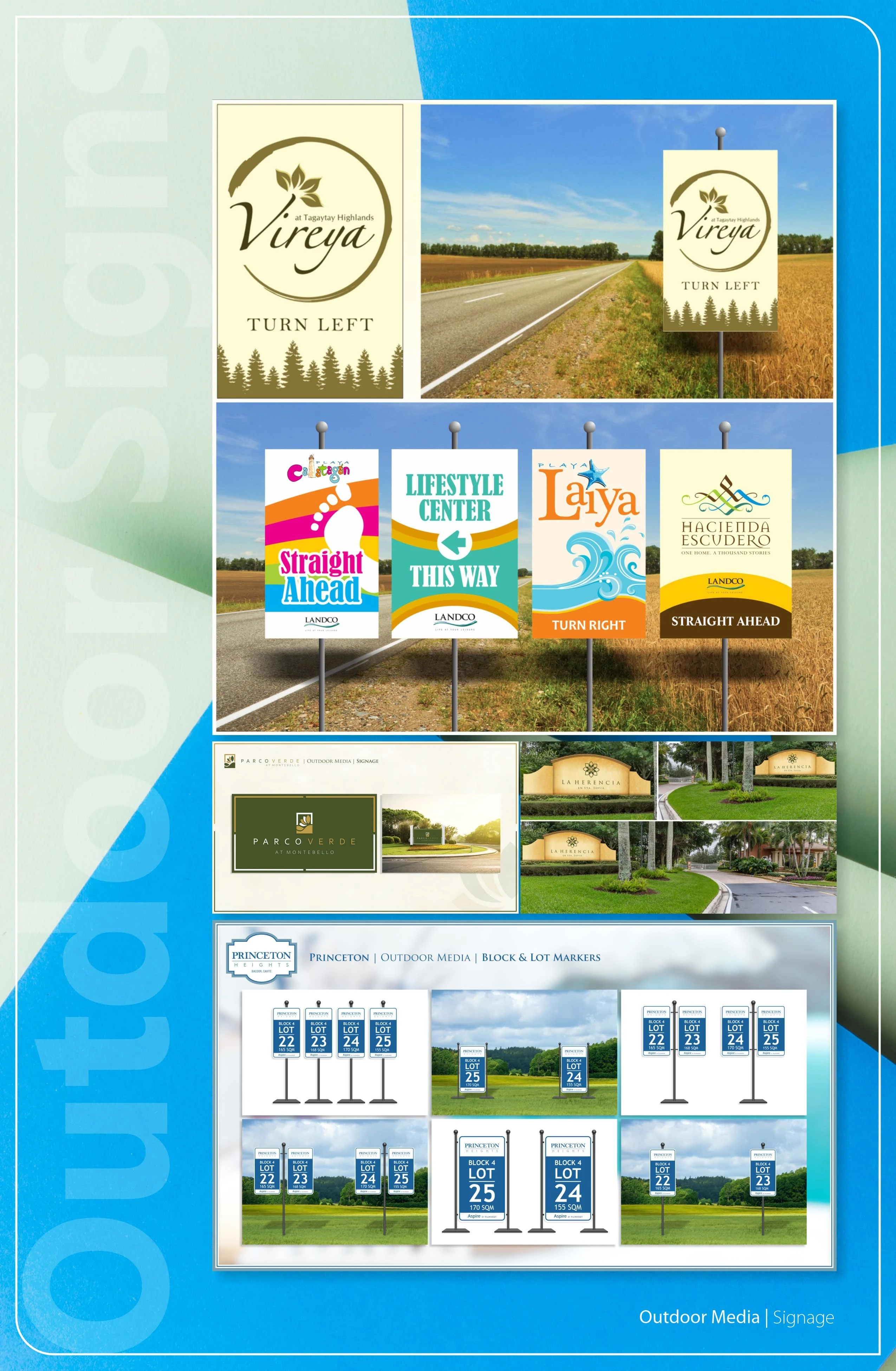 Outdoor signage design creations: directional signs, board ups/hoarding fence