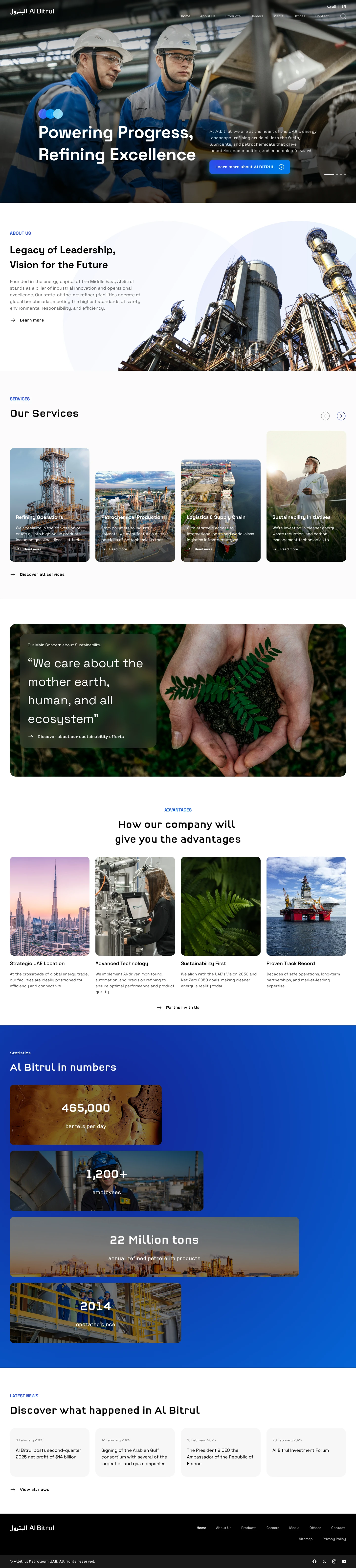 Excited to share my latest web design exploration: a comprehensive homepage layout for Al Bitrul, a leading petroleum and energy company based in the UAE.