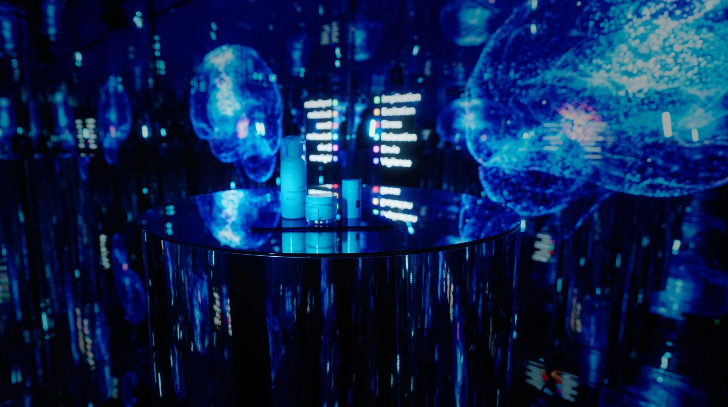 Moisturizer and products for visitors to use to see in real-time their feeling translated to generative design at Anjac's showroom.