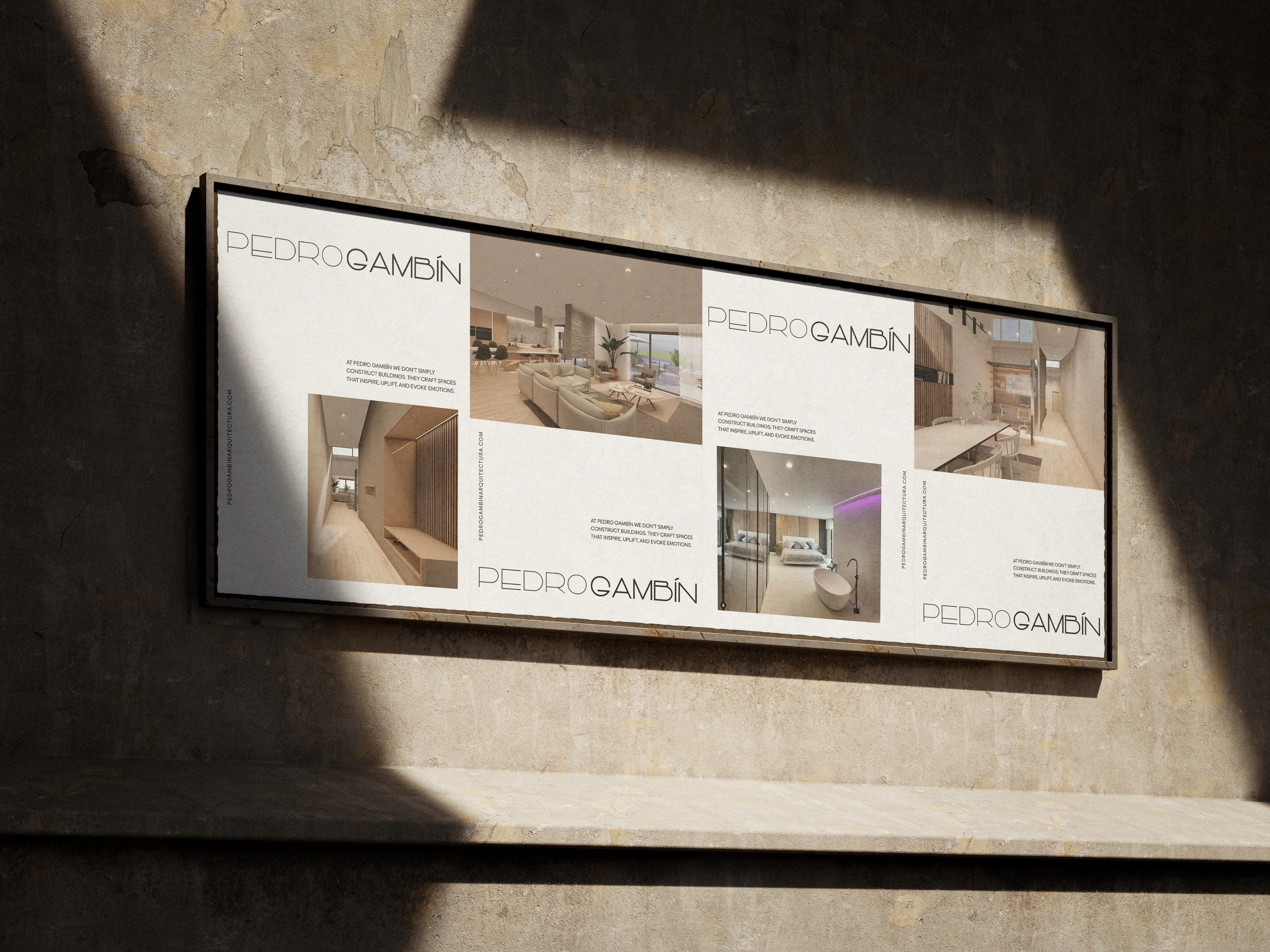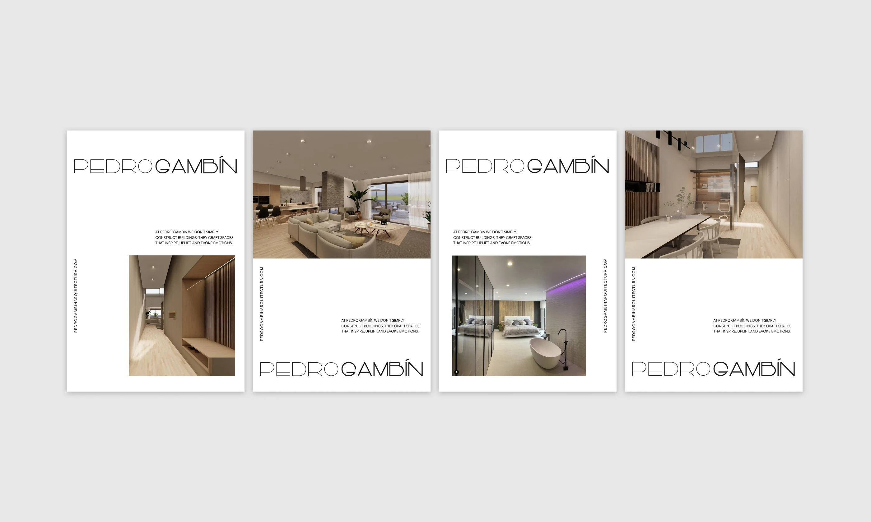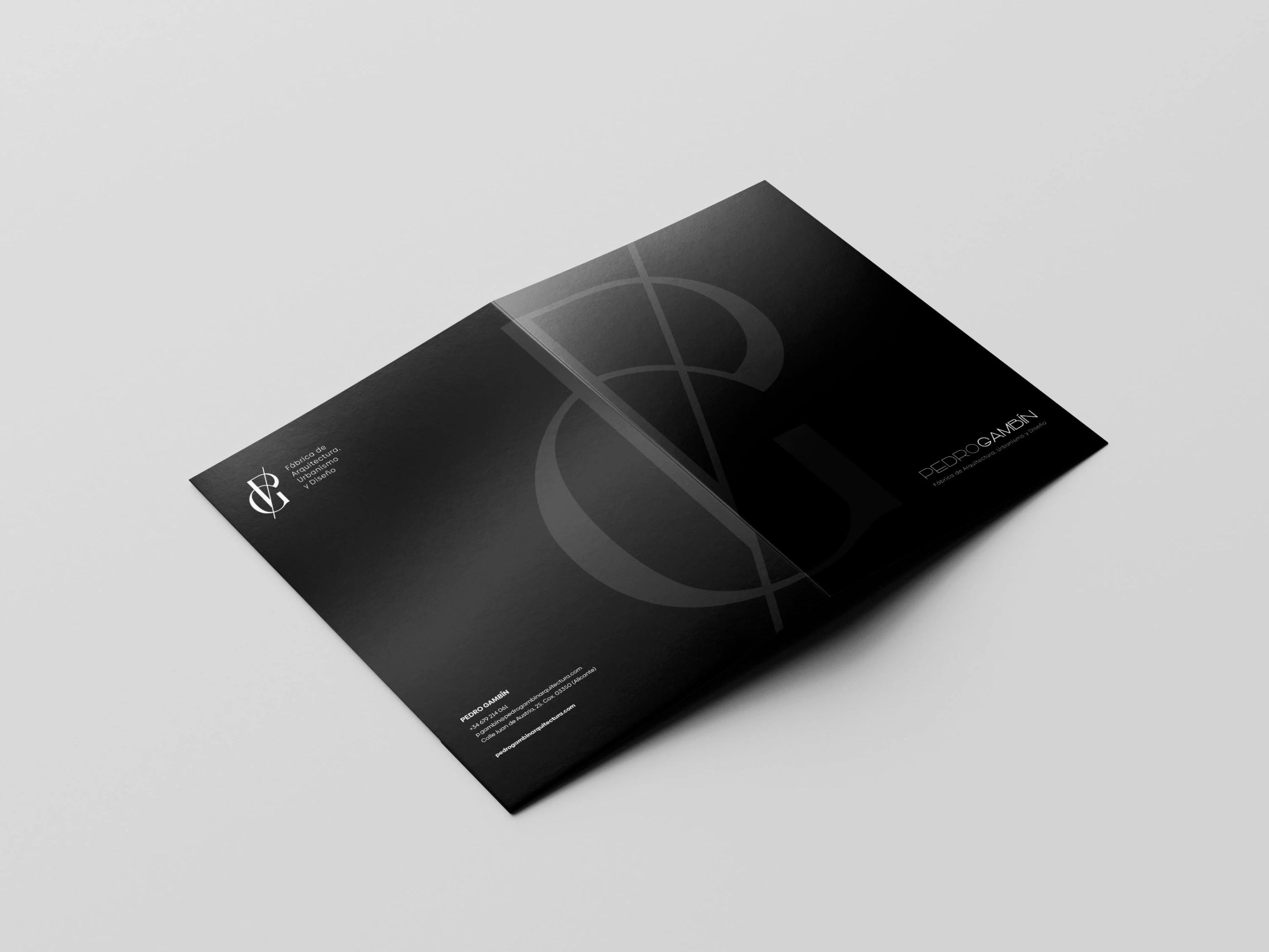 Brand identity and web design for Pedro Gambín Studio, creating a modern and refined visual system that highlights their architecture and interior projects.