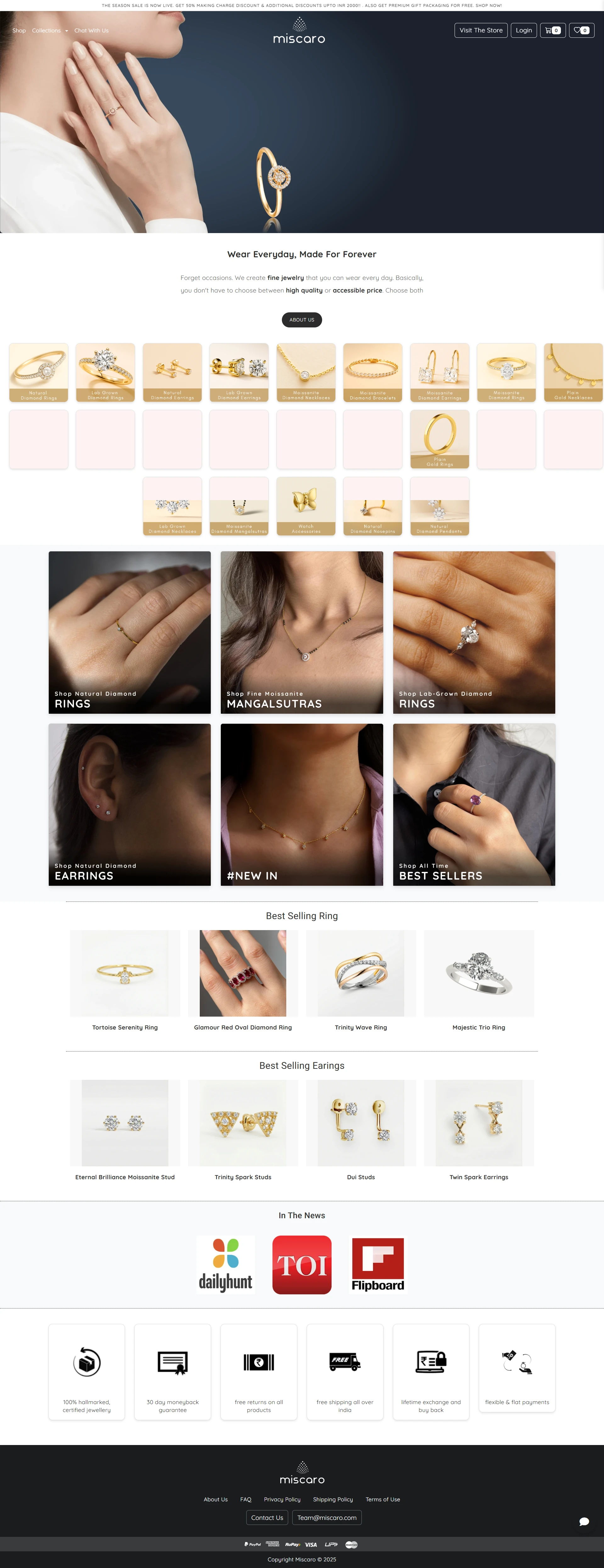 Diamond jewelry purchases traditionally require in-person viewing - needed high-quality product photography, zoom functionality, and detailed specifications (carat weight, clarity, metal purity) replacing tactile shopping experience digitally.