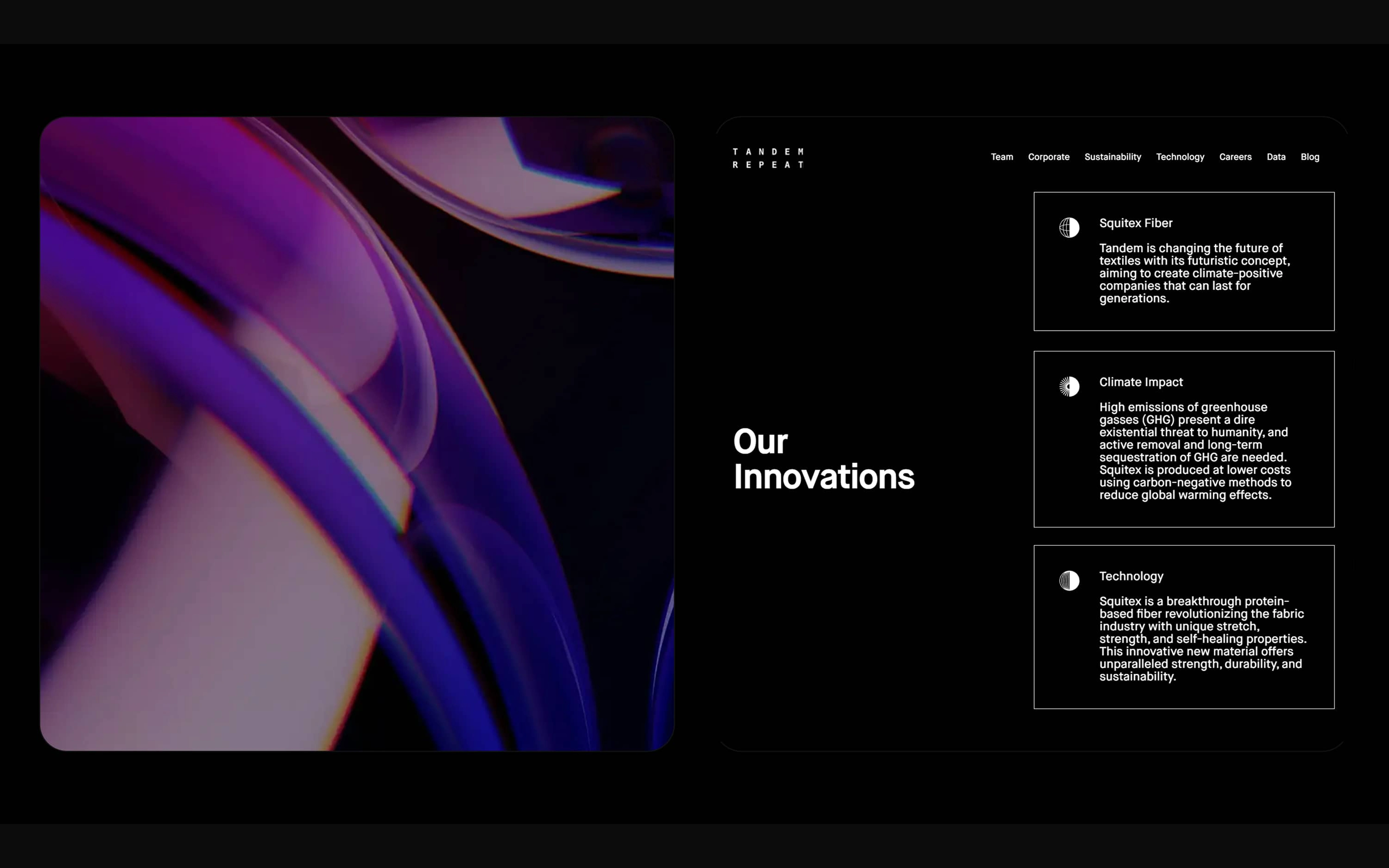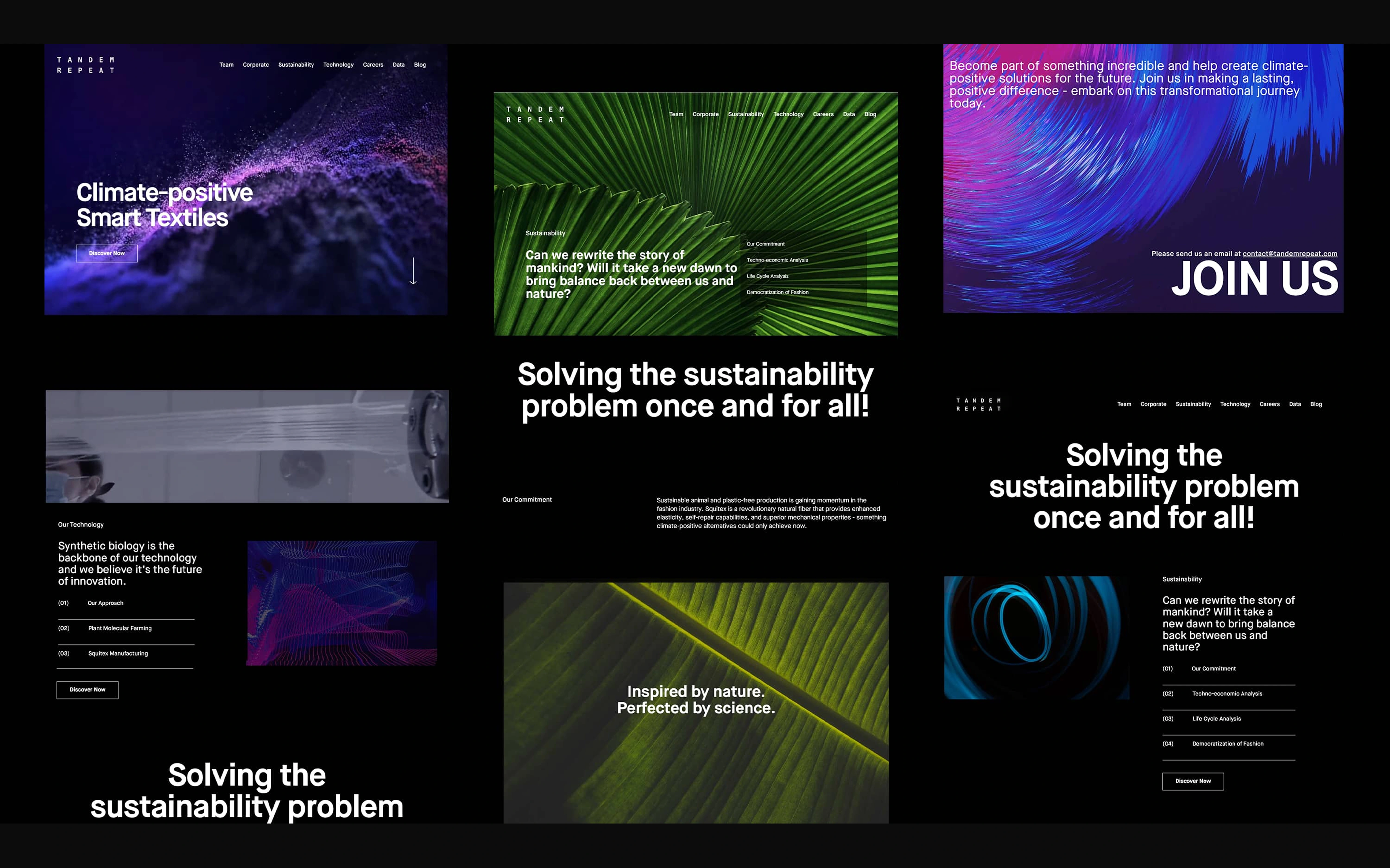 Tandem Repeat is a climate-tech initiative focused on environmental responsibility and long-term impact. The goal of this project was to translate a complex sustainability narrative into a clear, structured, and accessible digital experience.