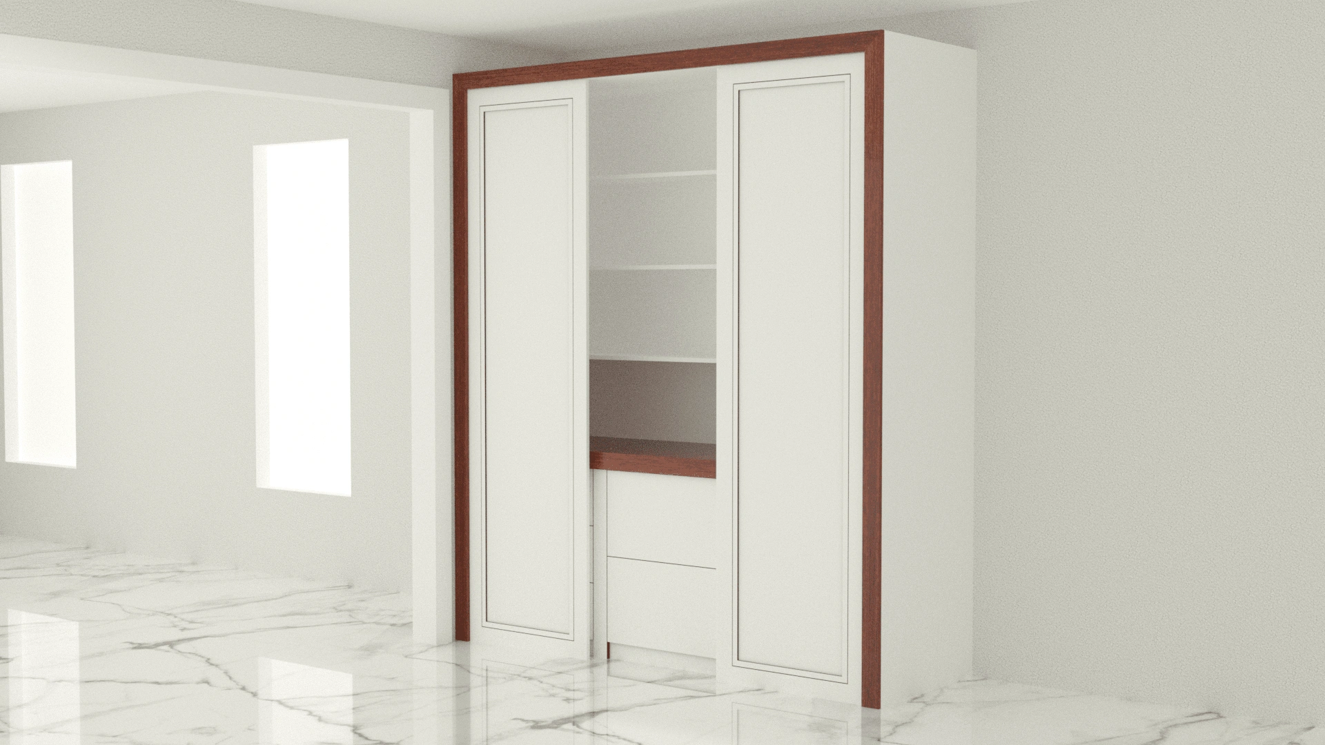 This T.V. unit was designed per the customer's instructions and it has been rendered following the lighting temperature color selected by the client.