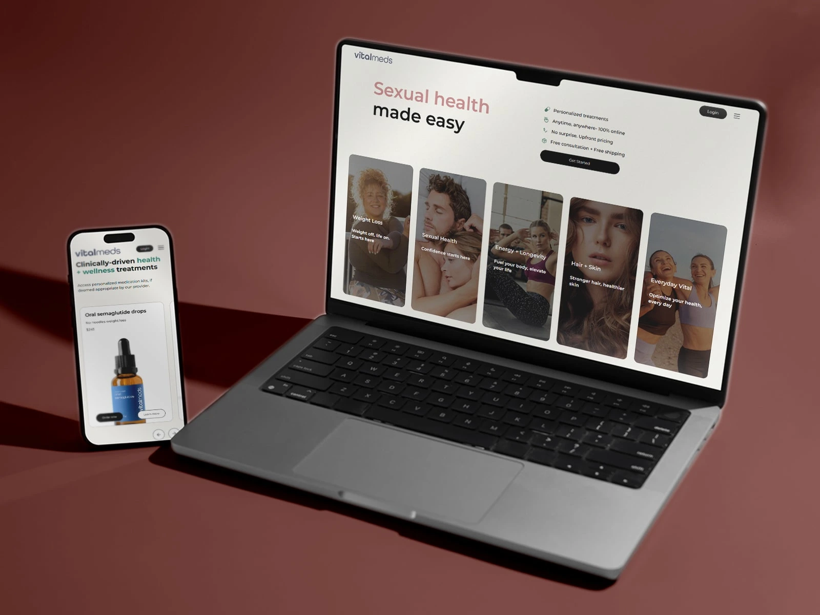 ๐๐ข๐ญ๐ ๐๐๐ฏ๐๐ฅ๐จ๐ฉ๐ฆ๐๐ง๐ญ, ๐๐๐ฌ๐ข๐ ๐ง & ๐๐ง๐ญ๐๐ ๐ซ๐๐ญ๐ข๐จ๐ง: The VitalMeds website was developed to create a seamless and user-friendly digital healthcare experience. The design focuses on simplicity, with a clean layout and easy navigation that guides users through various health categories such as Weight Loss, Energy & Longevity, Hair + Skin, and Sexual Health. Each product page is crafted to deliver clear information, pricing, and benefits, allowing users to make informed decisions. The site integrates virtual consultation flows, enabling users to complete medical questionnaires, schedule telehealth consultations, and receive prescriptions all through an online platform. The website also emphasizes transparency with straightforward pricing, no hidden fees, and free shipping, building user trust. Disclaimers and licensing information are prominently displayed to maintain medical compliance, especially for prescription and compounded medications.