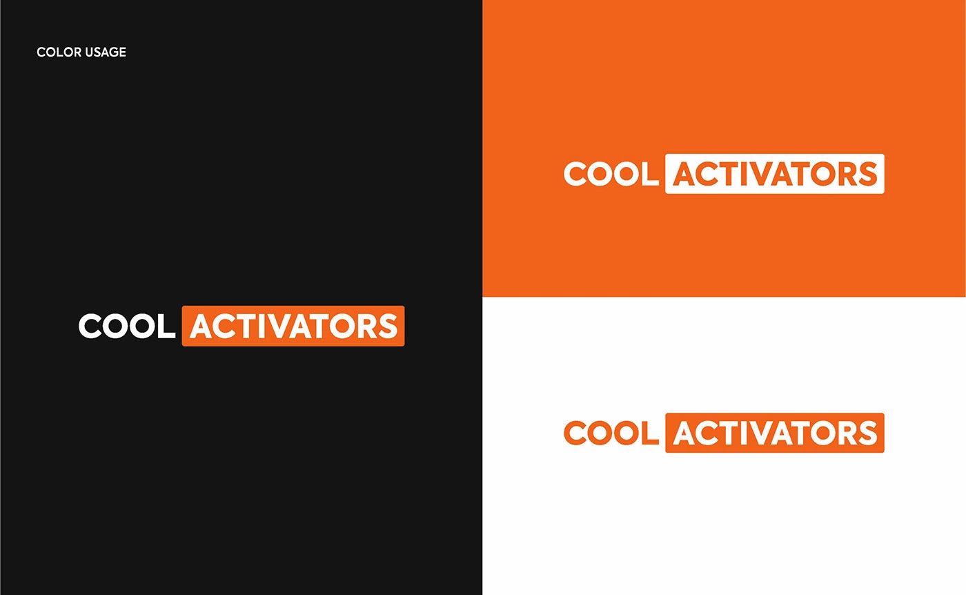 A bold and energetic brand identity for Cool Activators, featuring dynamic colors, sleek typography, and modern design elements for a fresh and engaging look.