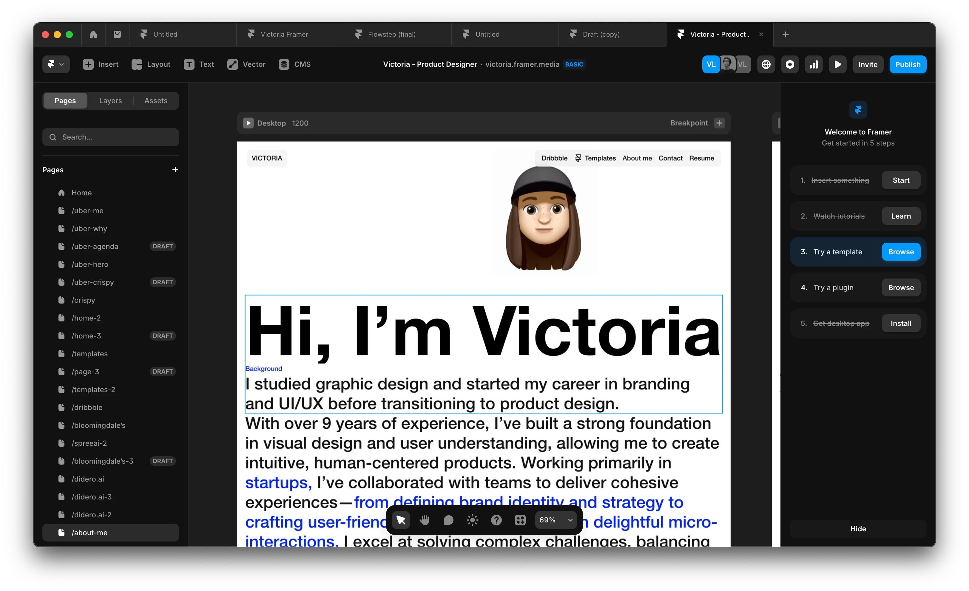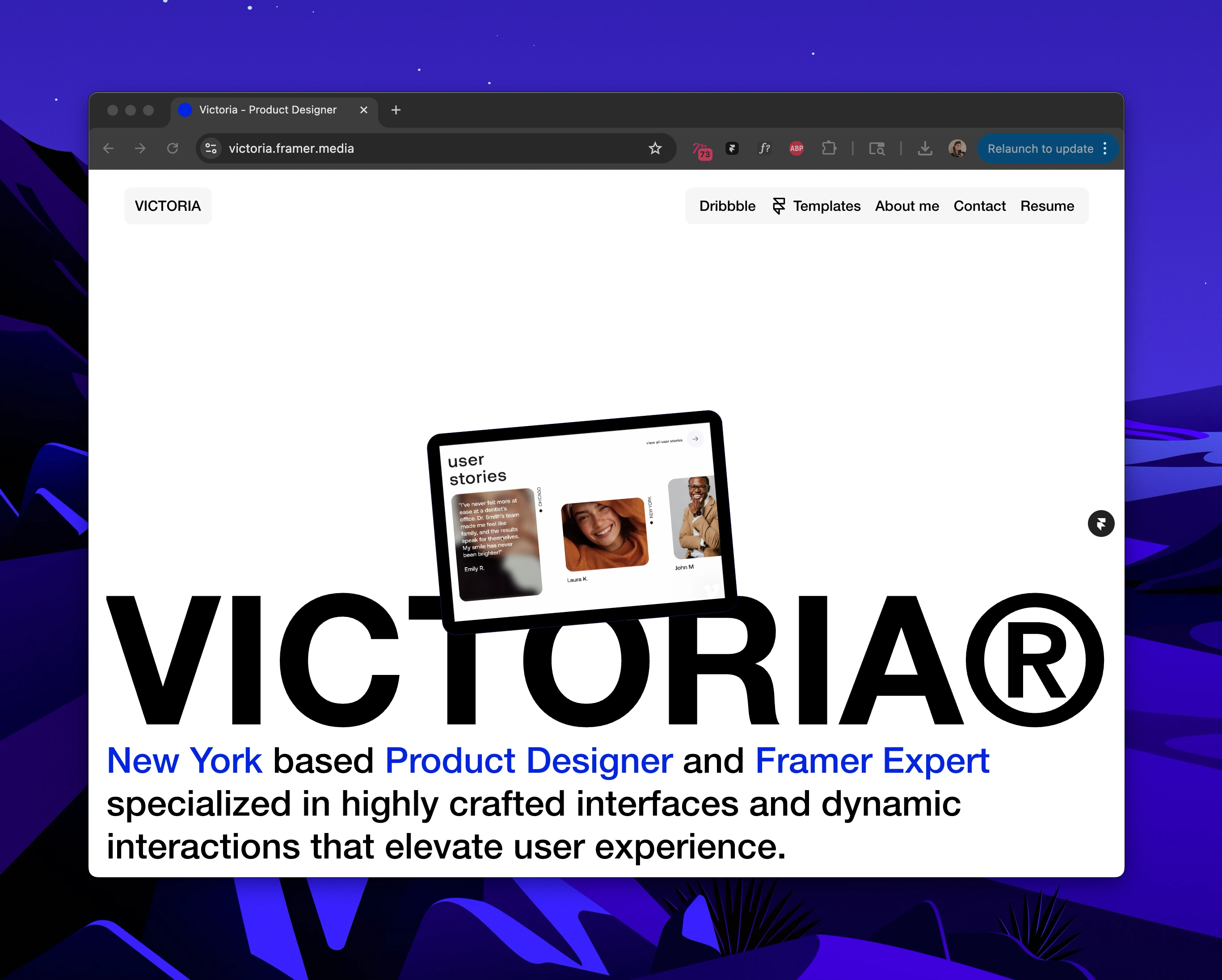 This portfolio was both a creative and technical exercise in building something that truly reflects my design philosophy. I crafted a bold, expressive, and interactive homepage entirely in Framer—handling both the design and development myself.