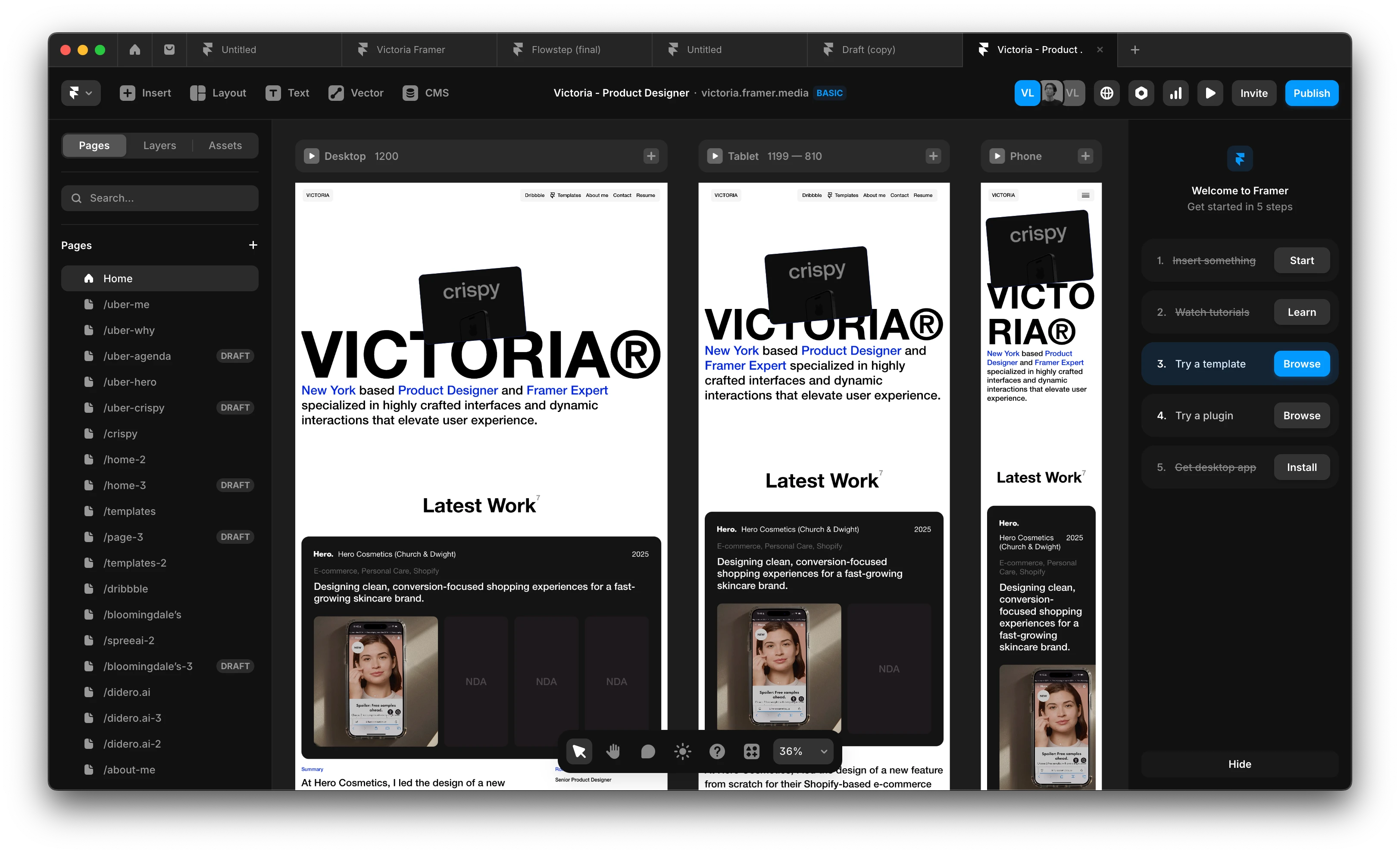 I also used custom code and integrations to push beyond Framer’s native limits—introducing smooth transitions, dynamic layouts, and conversion-minded interactions to bring it all to life.