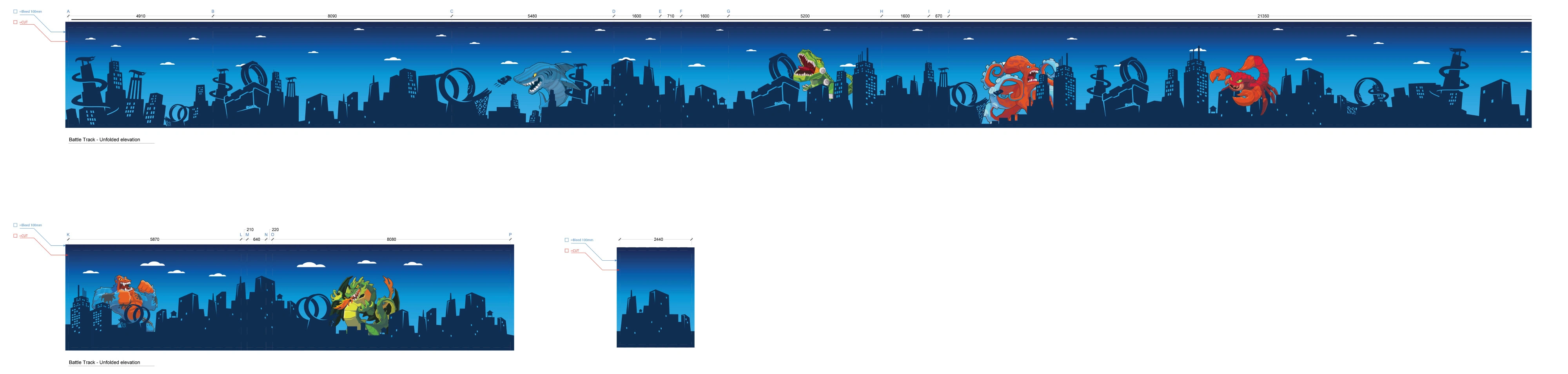Designed 50m+ walls, a 3000sqm floor for Mattel's Abu Dhabi Center. Remote execution, efficient collaboration with Art / Creative Dir, and vendor communication.
