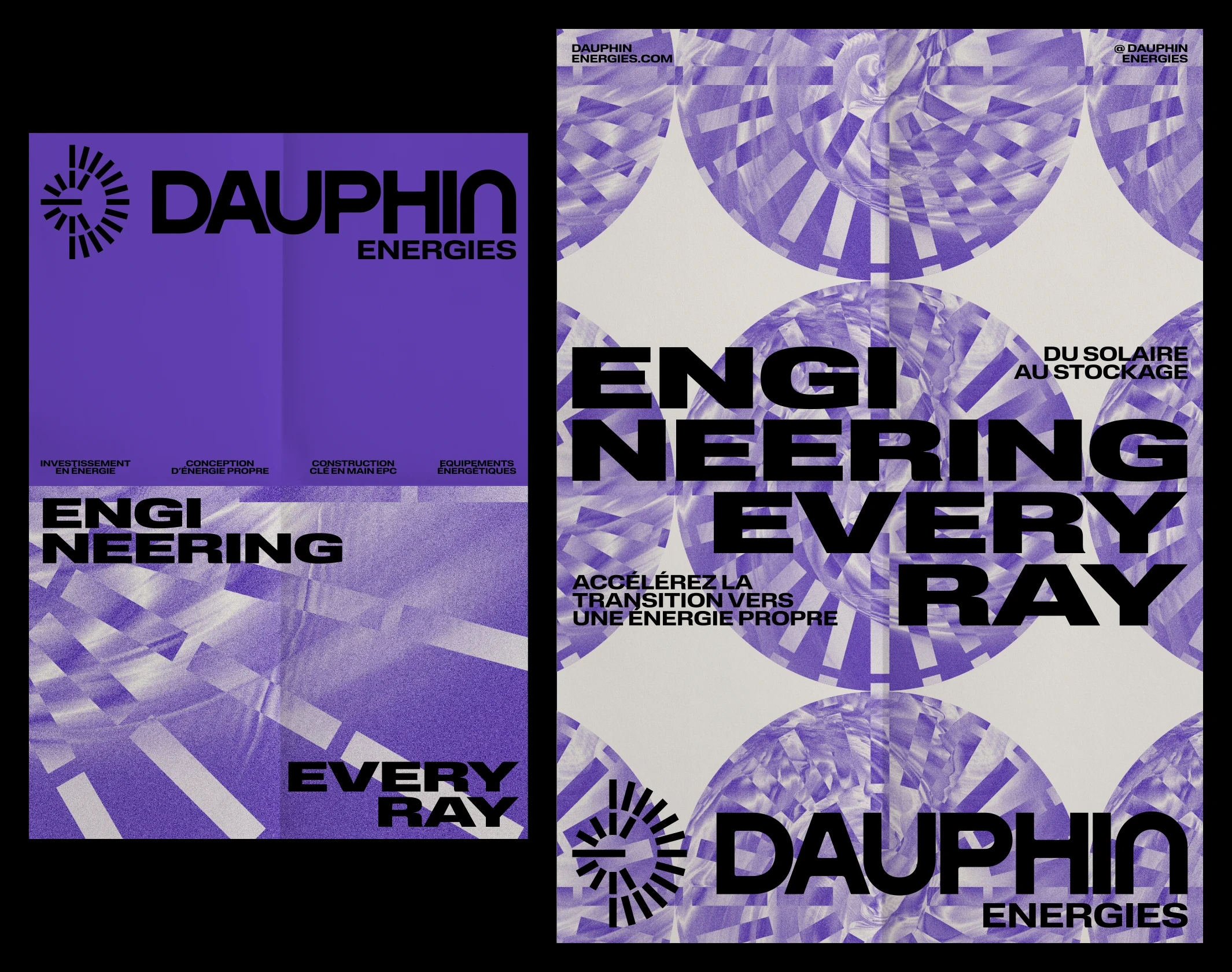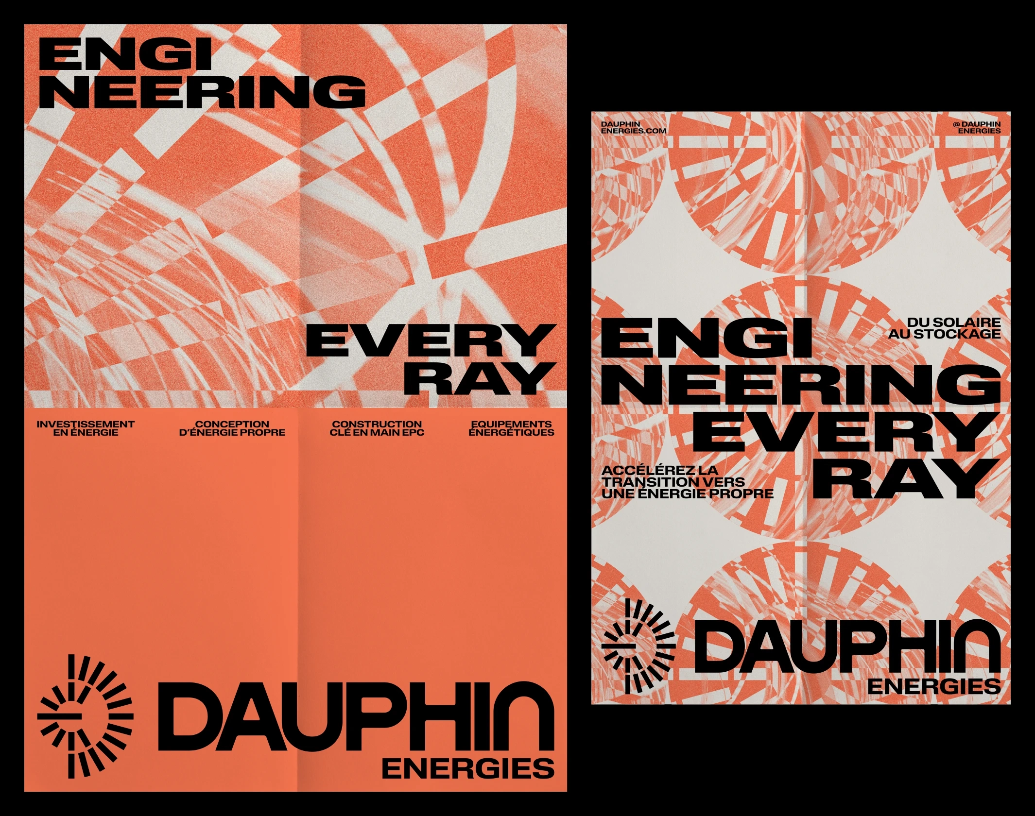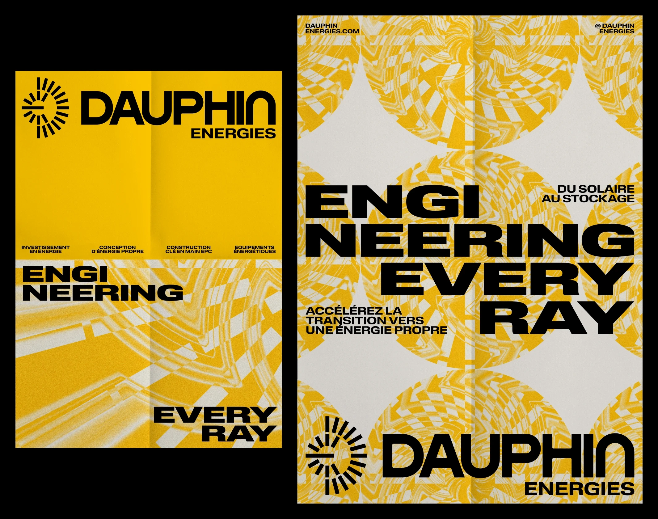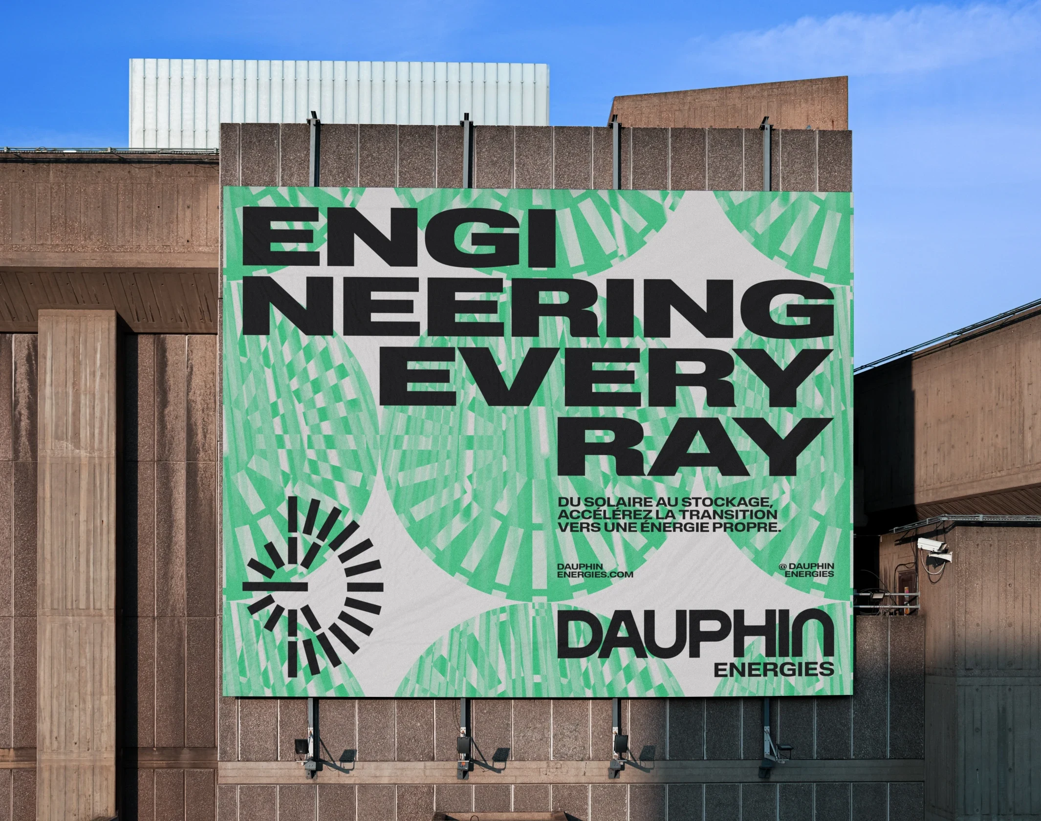 In mid-2025, Dauphin Energies approached us to completely rethink their graphic identity. Based on a strong environmental promise and large-scale ambition, we collectively took the direction of branding charged with obvious energy. Carefully avoiding the tired visual codes of environmental communication, we based our work on a reassuring logo, with a monogram forming its backbone. The initials D+E interlock to form a powerful ray of light, around which the graphic territory is structured. The branding develops the idea of living energy through a series of textures that appear across various communication media, laying the foundations for a contemporary and commitment-driven brand. The identity is set to grow and spread among its audience during 2026.