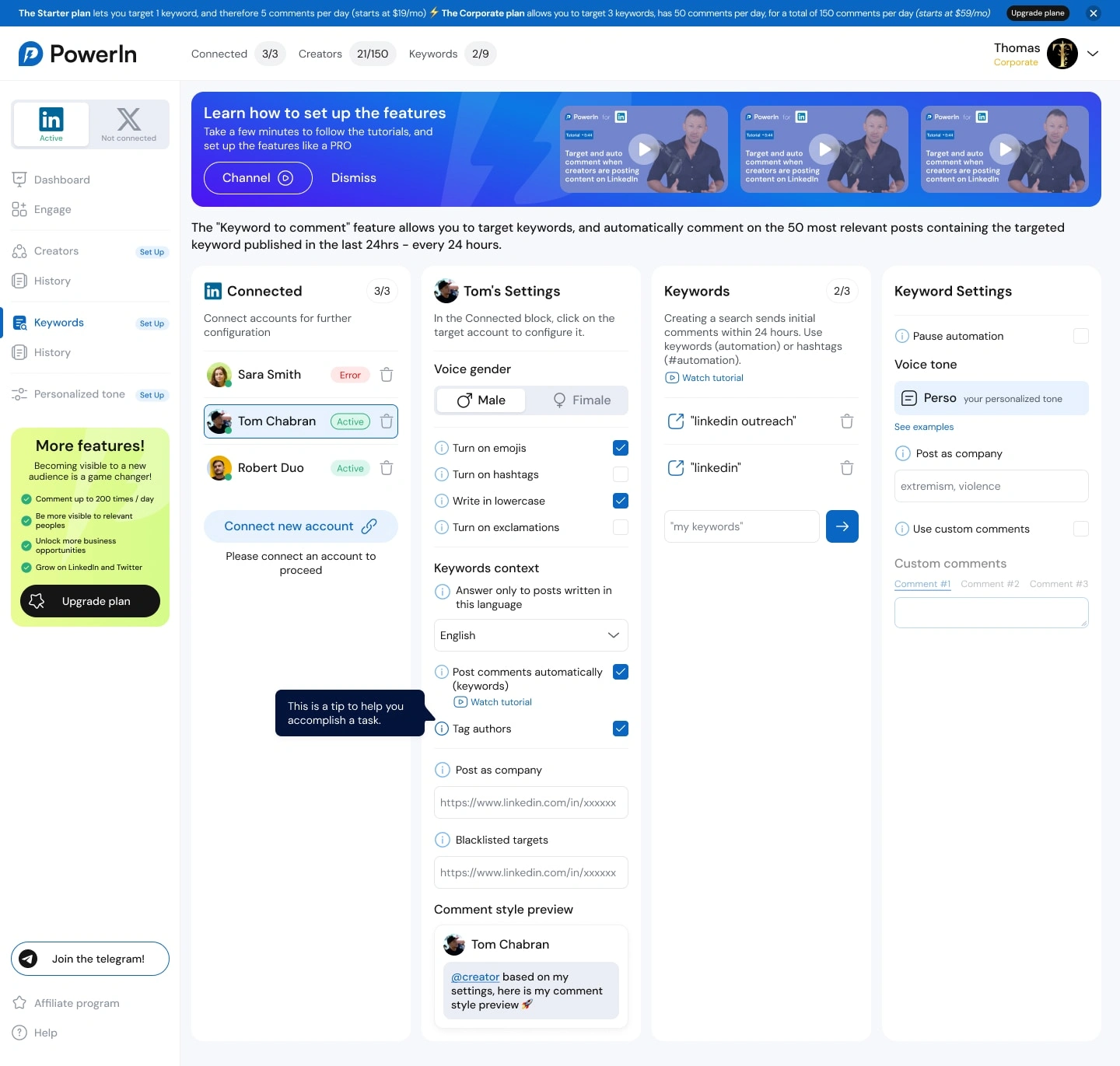 AI Post Generation — Craft posts based on tone, keywords, and audience.