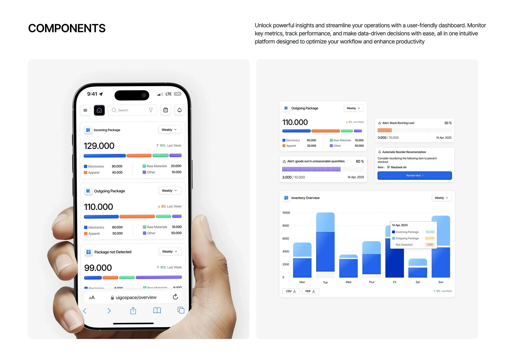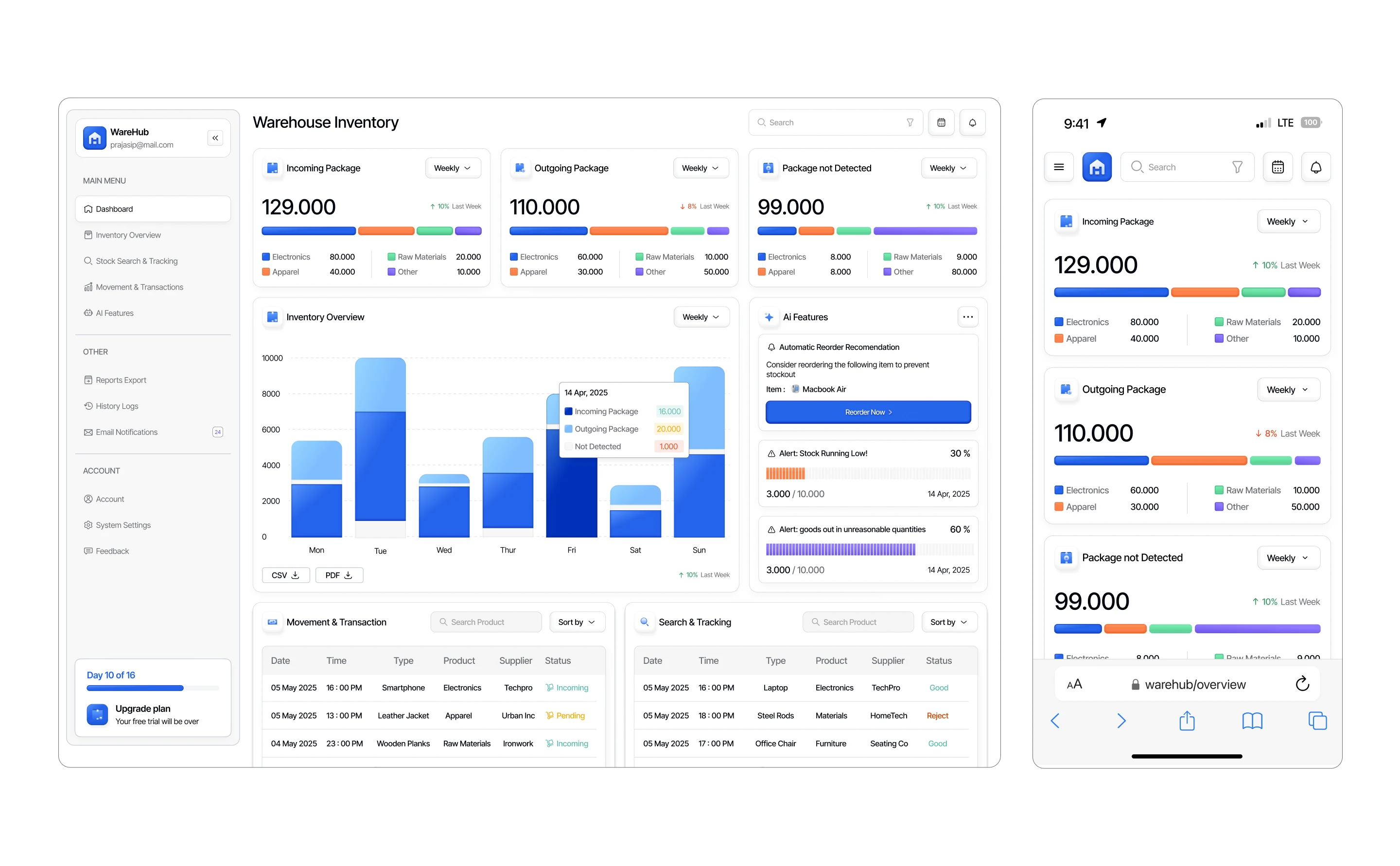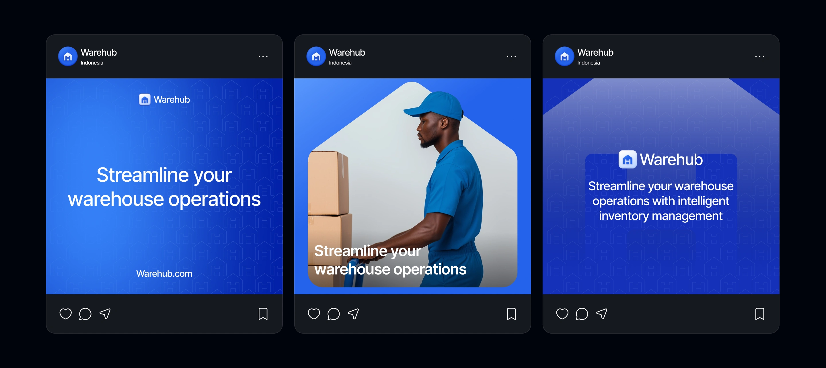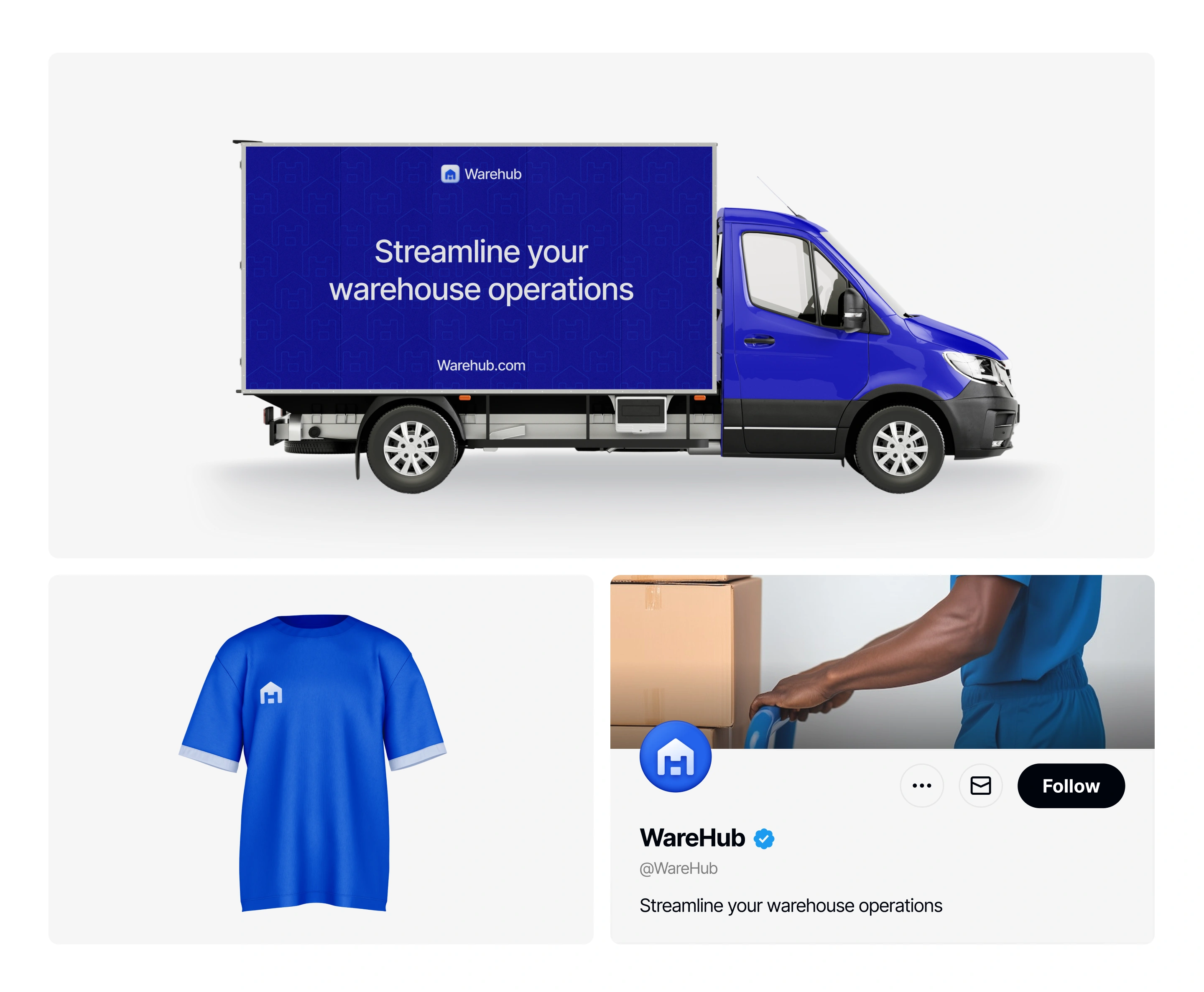 A professional warehouse management platform design for WareHub. Features a premium SaaS focused on AI predictions, real-time inventory tracking, and reporting.