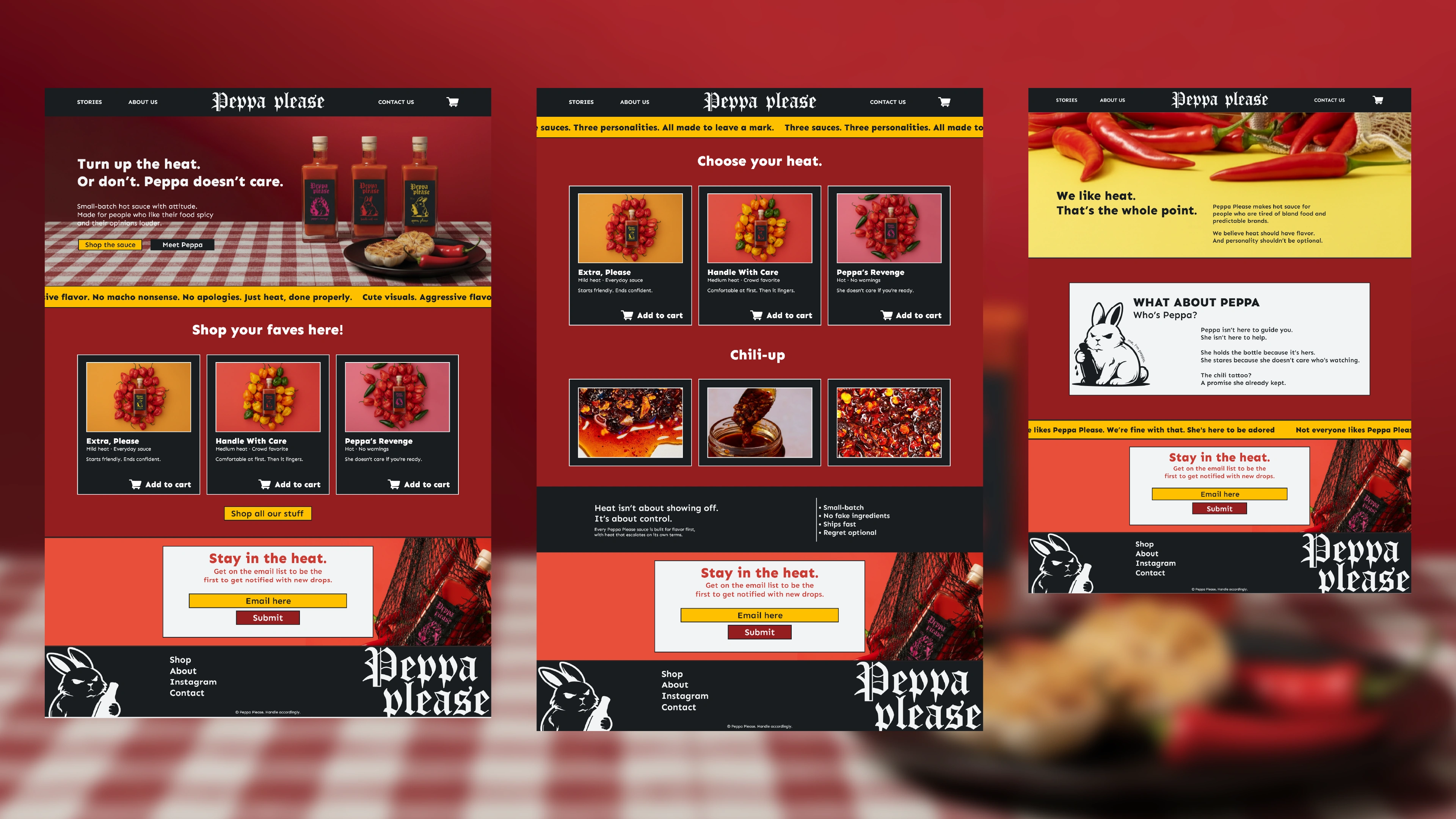 Brand identity, packaging, and web design for a hot sauce brand. Focused on creating a visual identity designed to scale across physical and digital touchpoints