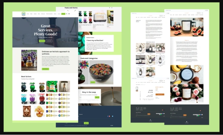 The 1857 Candle Co store highlights handcrafted luxury, while Service Goodz focuses on everyday essentials with style.