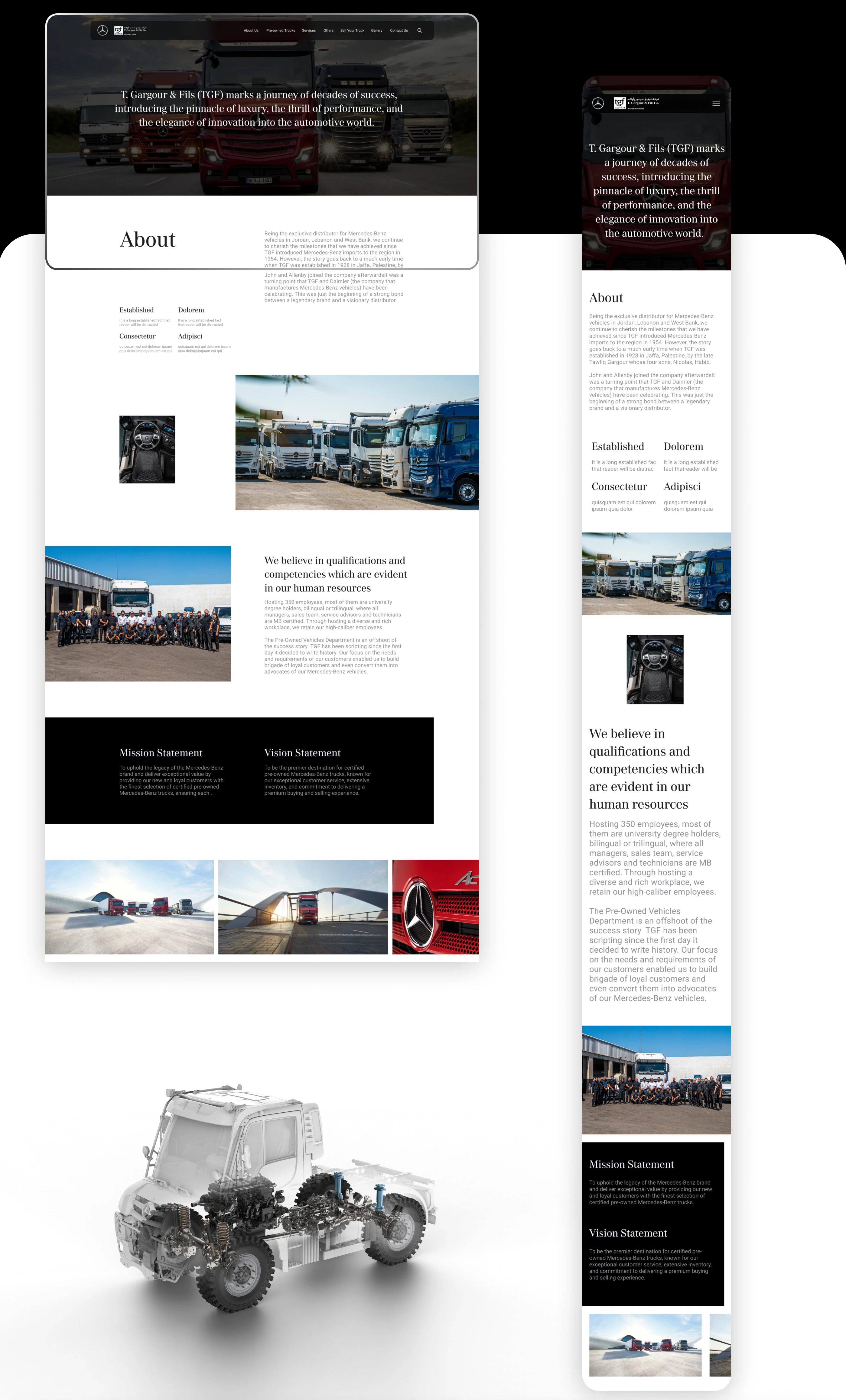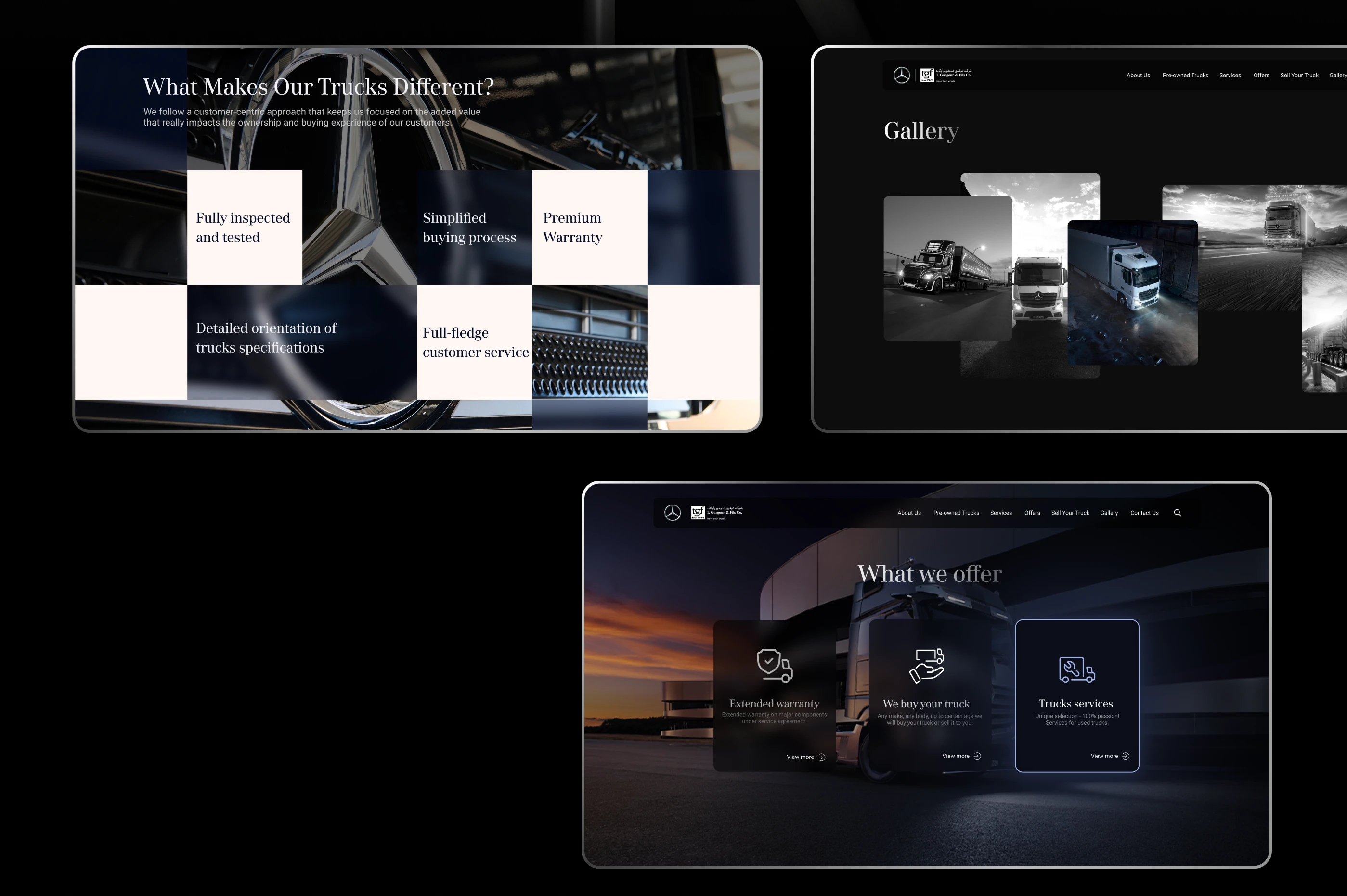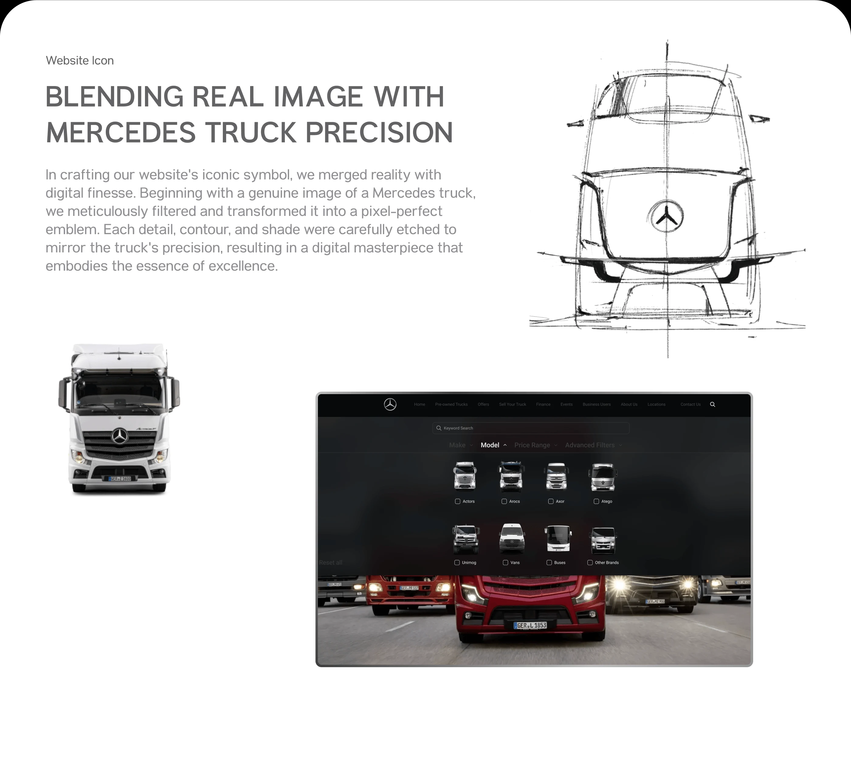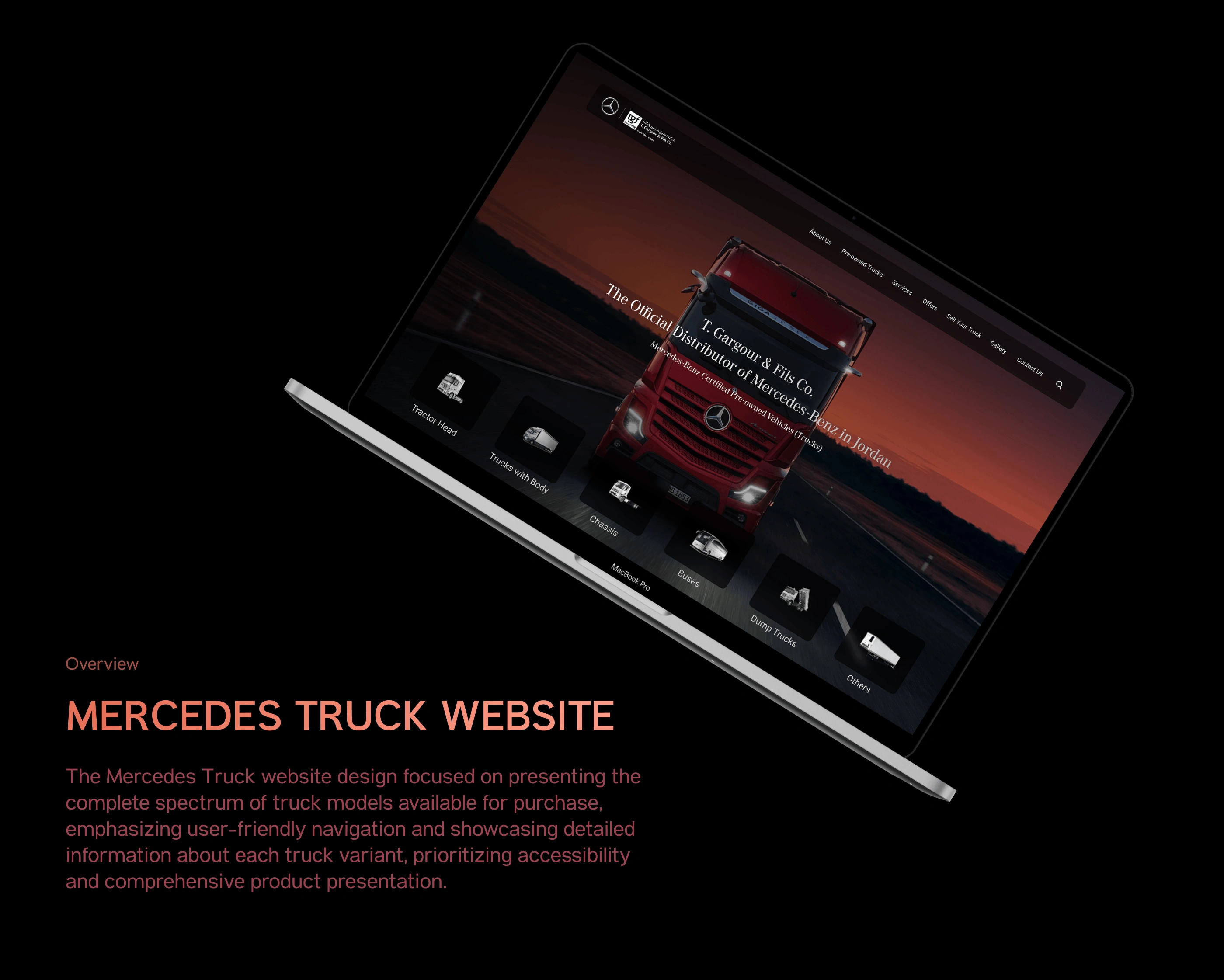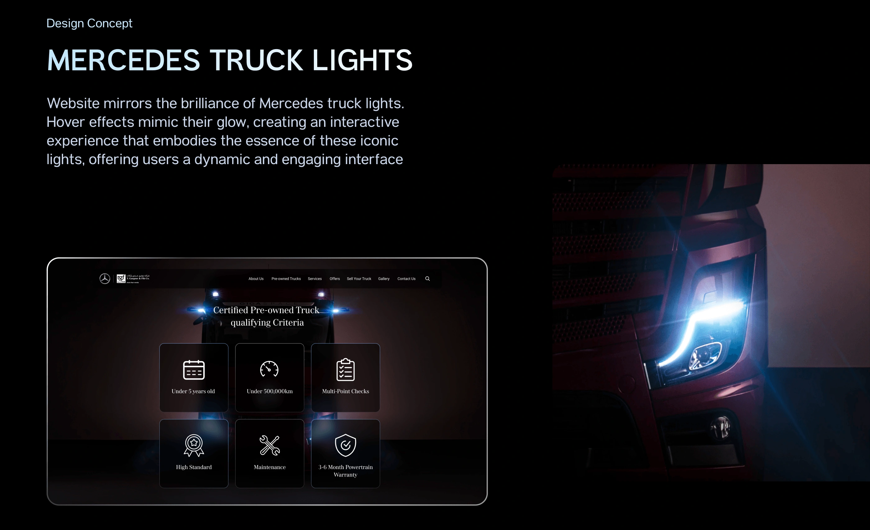 Explore Mercedes Trucks: A sleek fusion of minimalist design and intuitive user interaction, revealing intricate details with ease