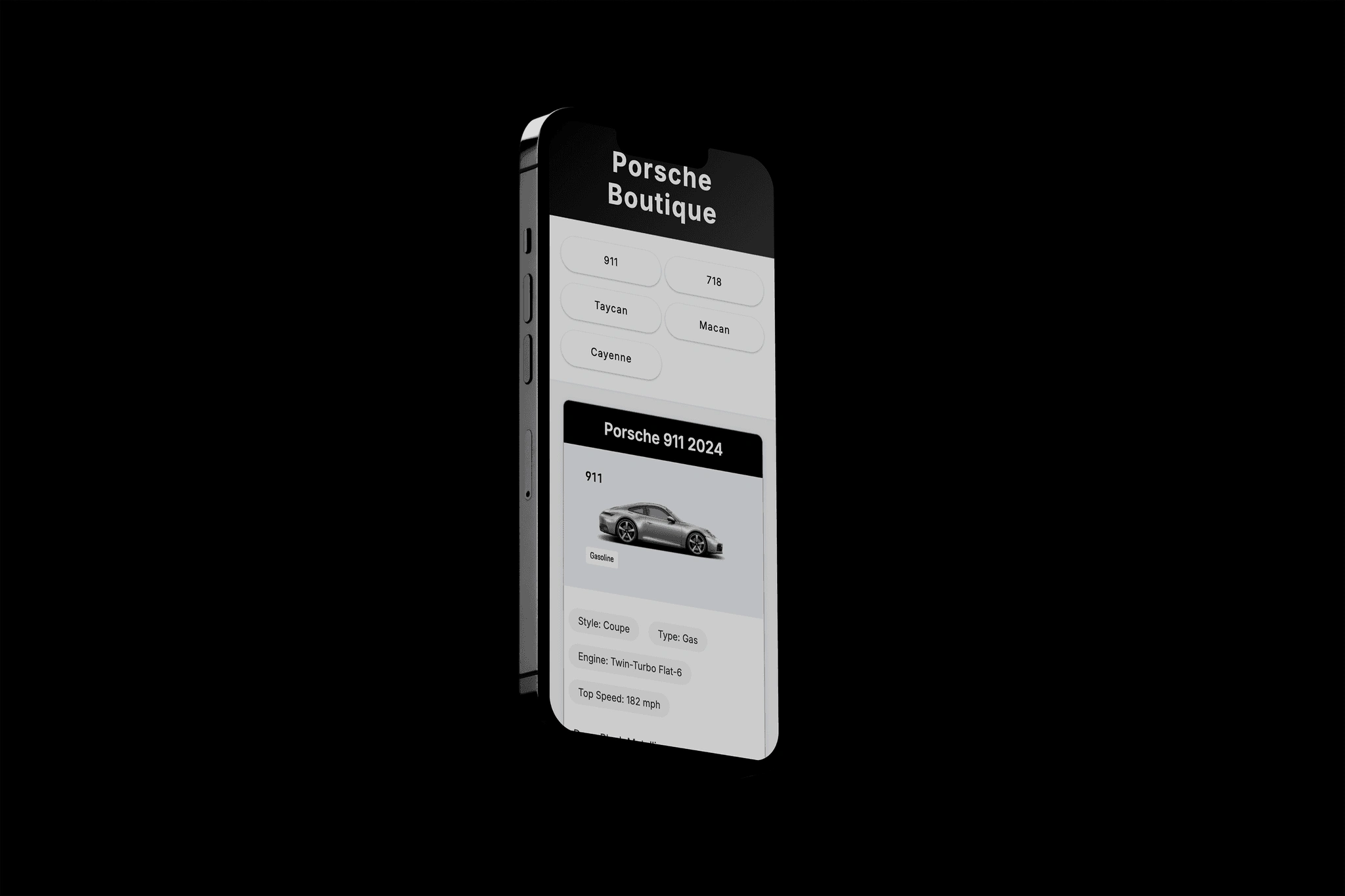 December 2024 Porsche app I coded and designed.