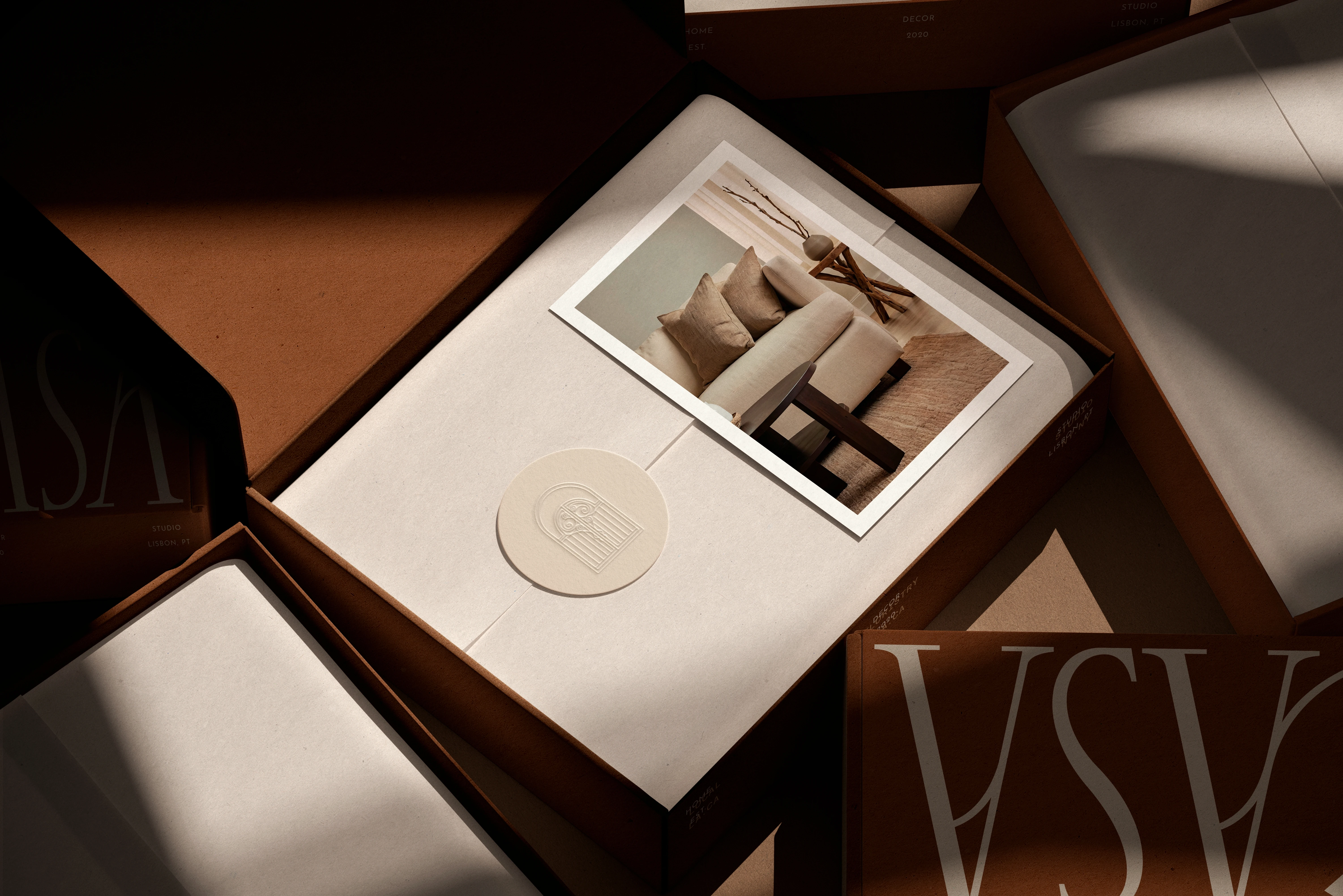 Full brand identity for CASA, a Lisbon home decor studio. Logo, packaging, and art direction inspired by Art Nouveau details, earthy tones, and old-world craft.