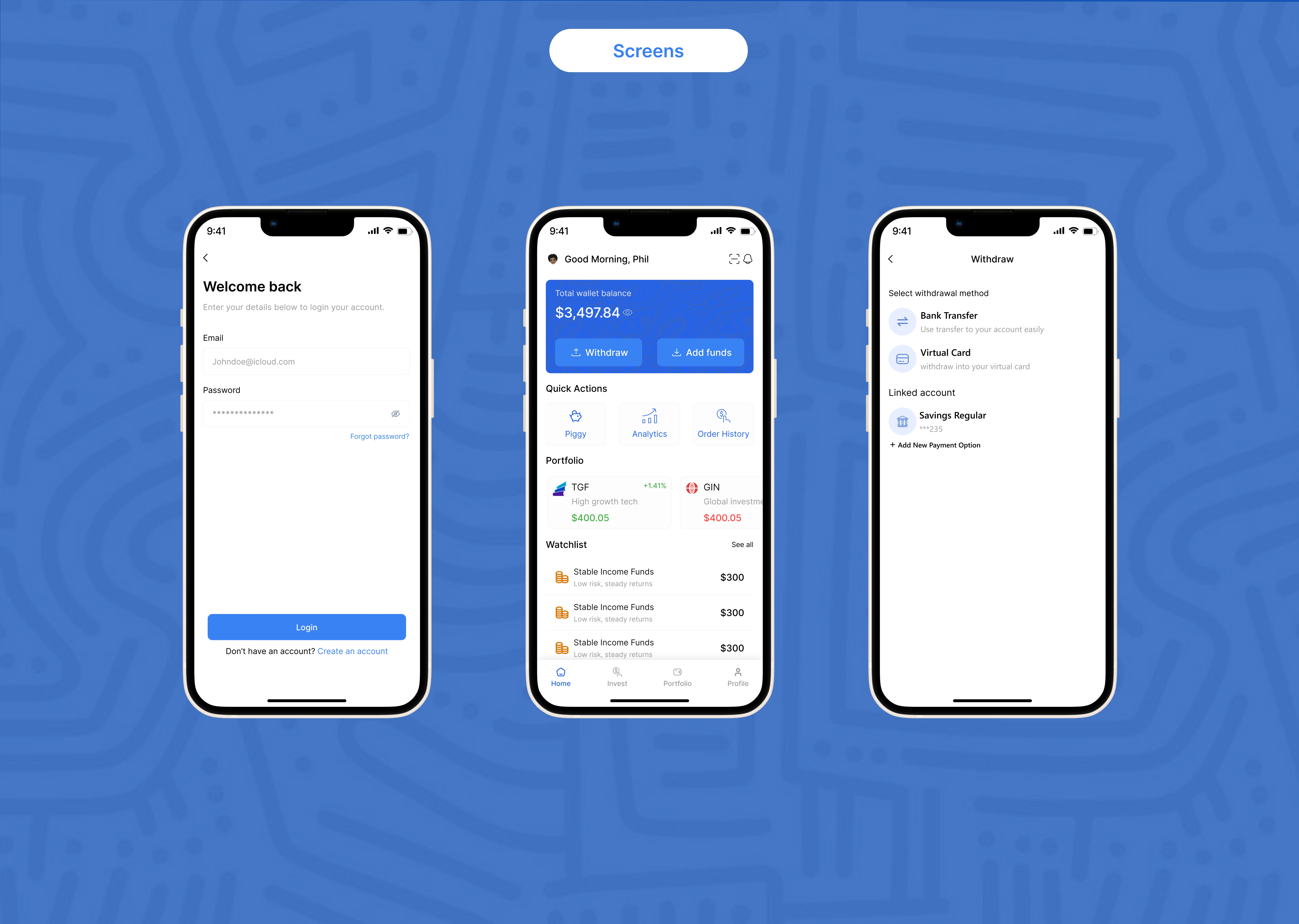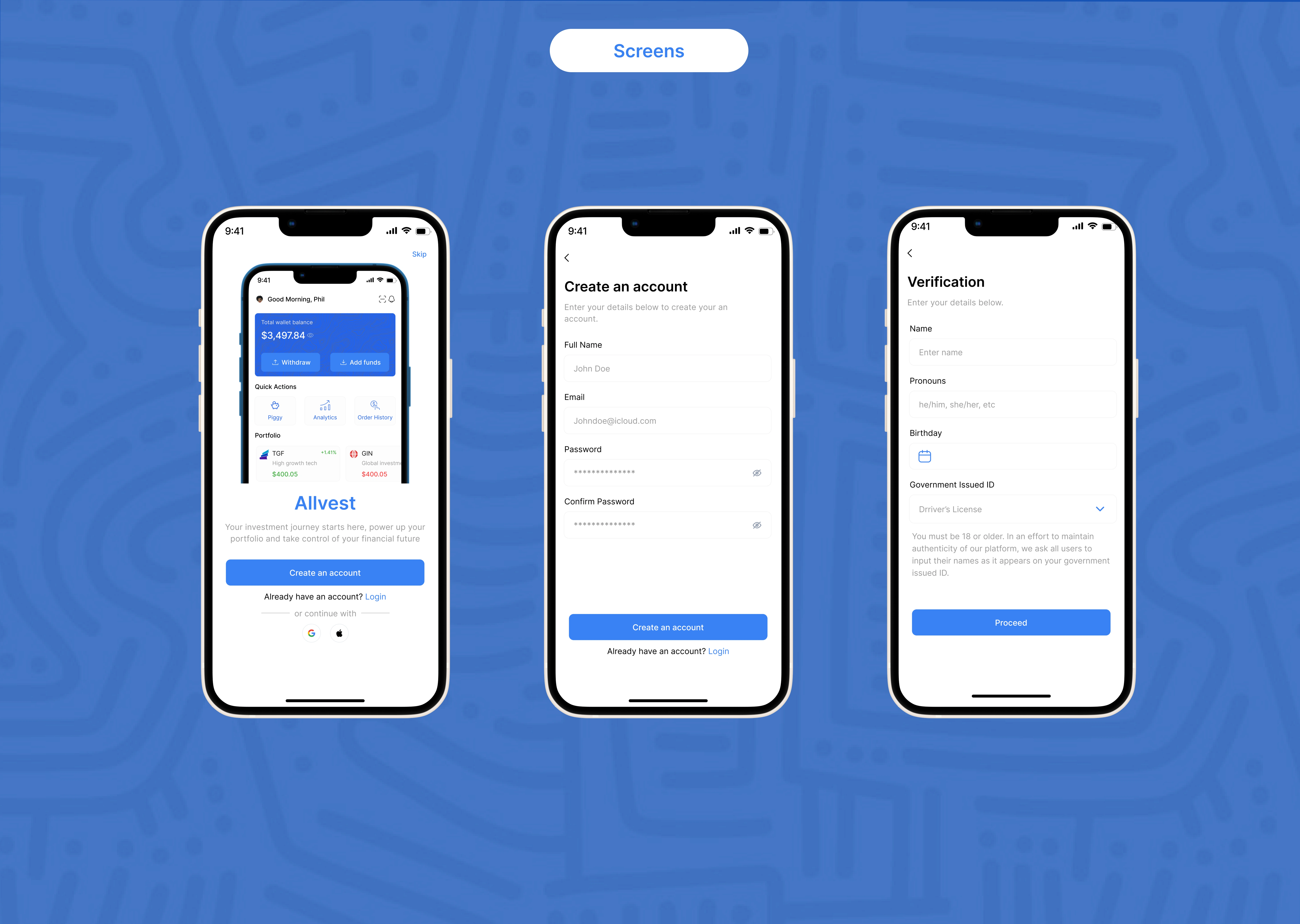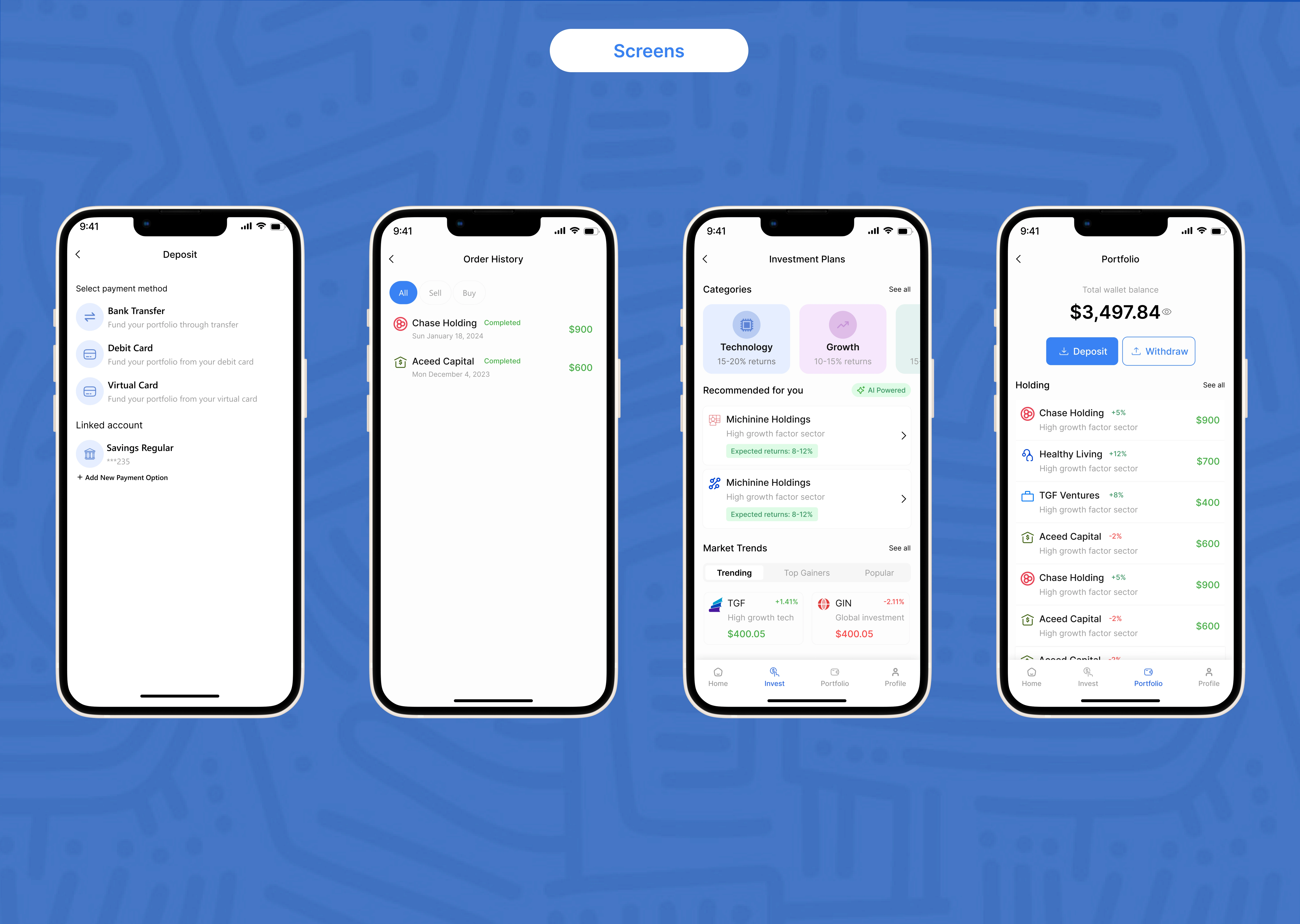 Designed AIlvest app for easy investment management and portfolio tracking.