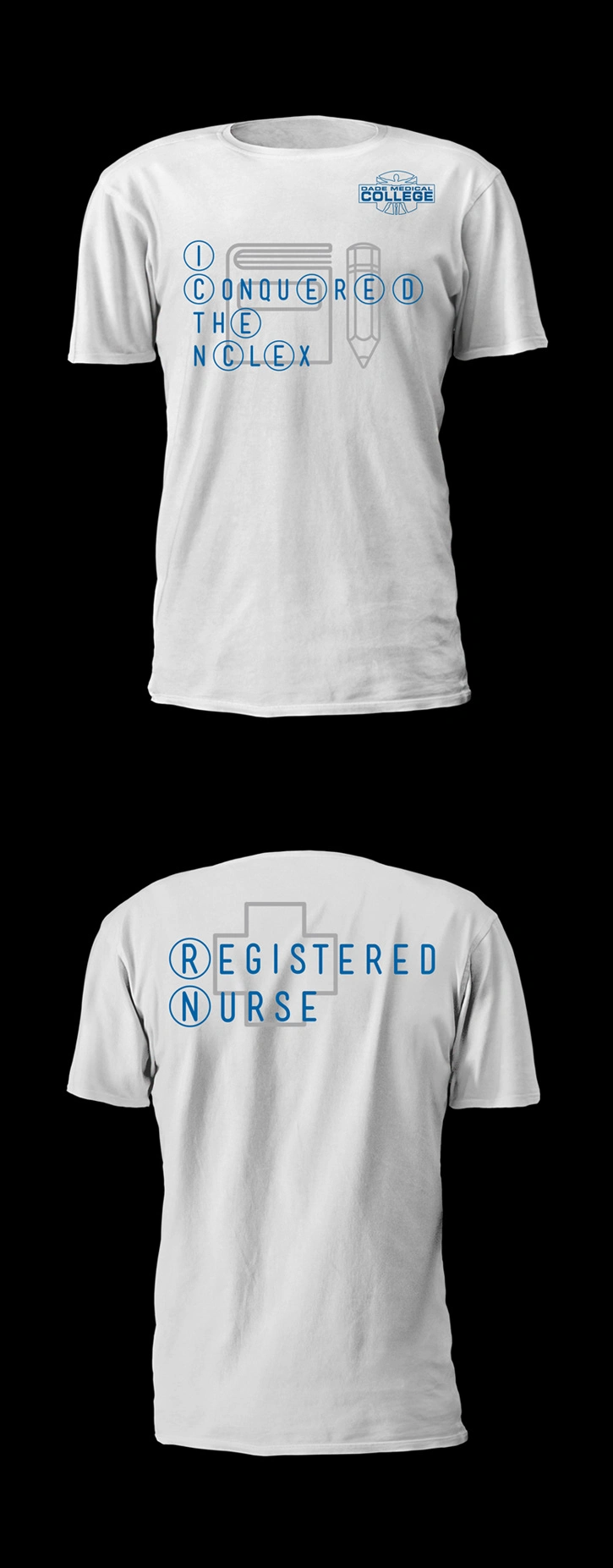 While working as an in-house graphic designer at Dade Medical College, I was tasked with designing a commemorative T-shirt for nursing students who passed the NCLEX—the national licensing exam for registered nurses in the U.S.