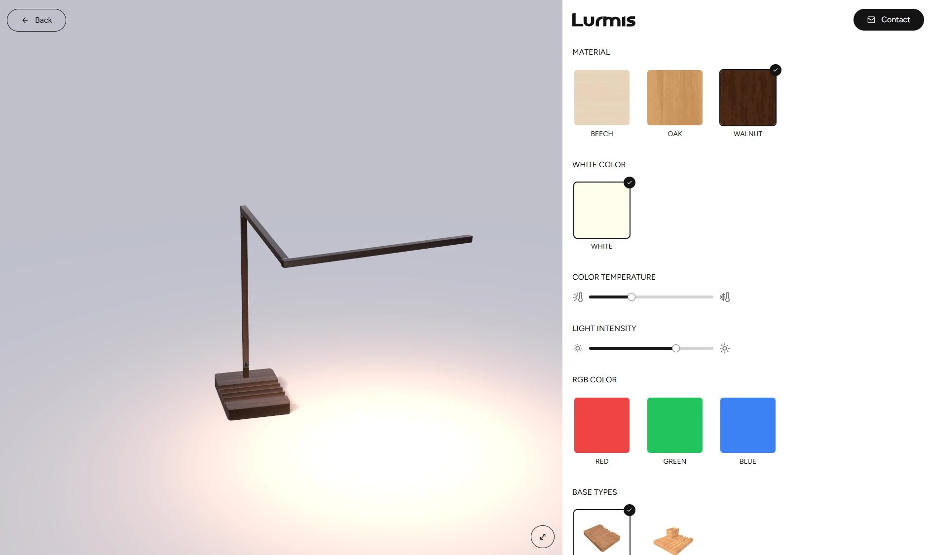 A 3D lamp configurator where users can customize styles and colors, previewing in real time. Featuring a smooth UI with 3D rendering for an engaging experience.