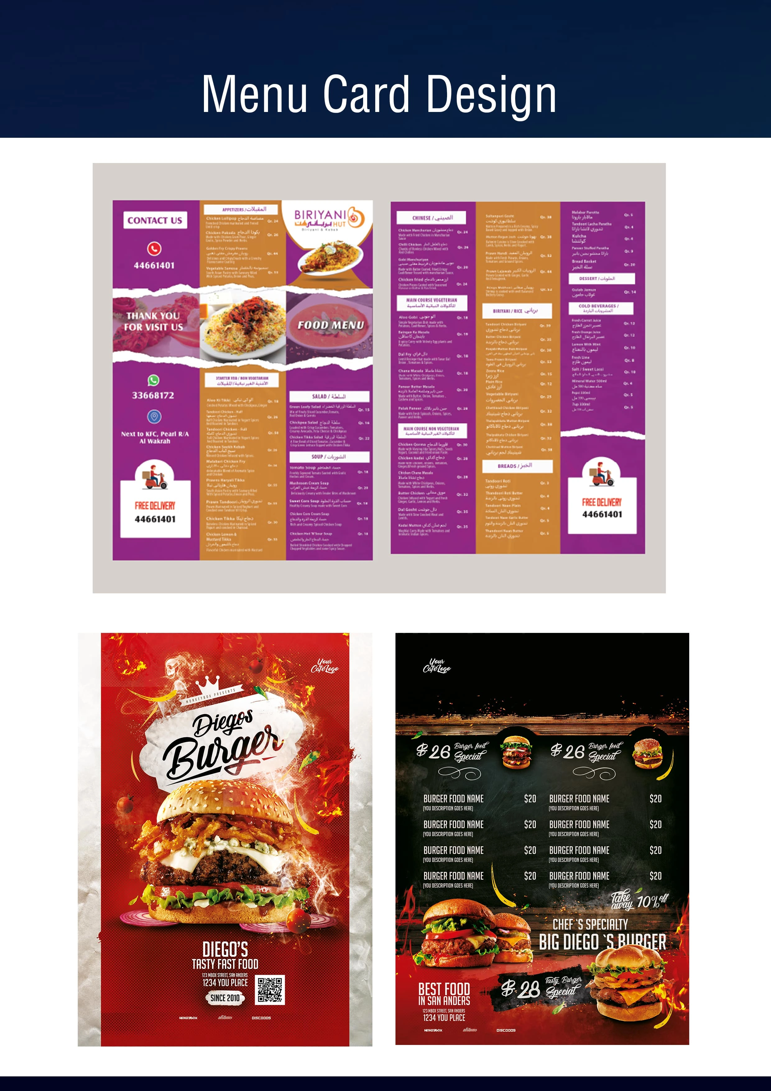 Food Menu designs for Some of my clients